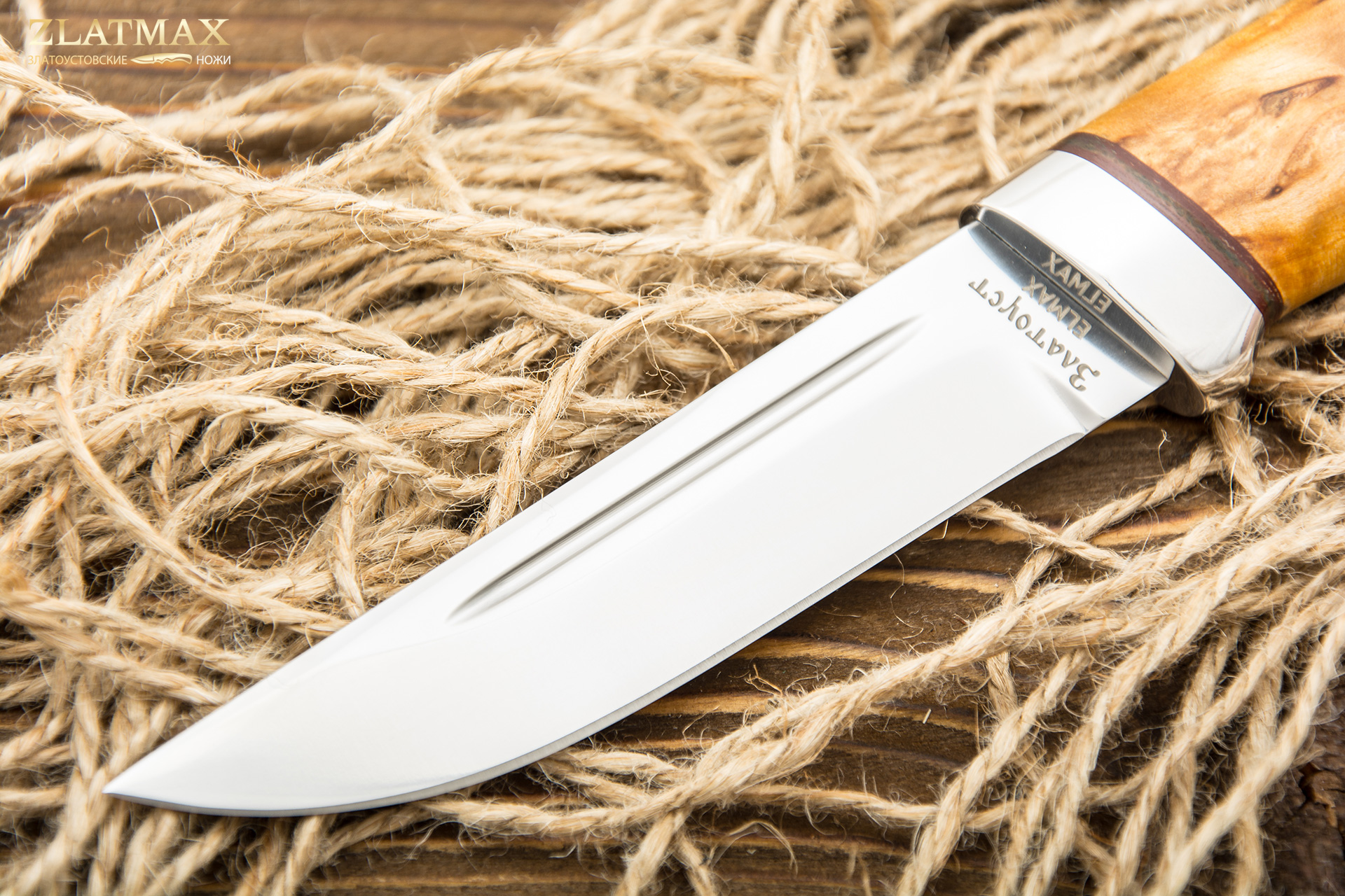 ELMAX - один из признанных лидеров мировой металлургии. Эта сталь была изобретена в Швеции. Она нержавеющая, изготавливающаяся из специального порошка. Обладает большой износоустойчивостью. Благодаря химическому составу, она почти не деформируется, легко переносит воздействие влаги. Специальная термическая обработка позволяет легко затачивать и полировать ножи. Причем поверхность клинка получается практически зеркальной.
