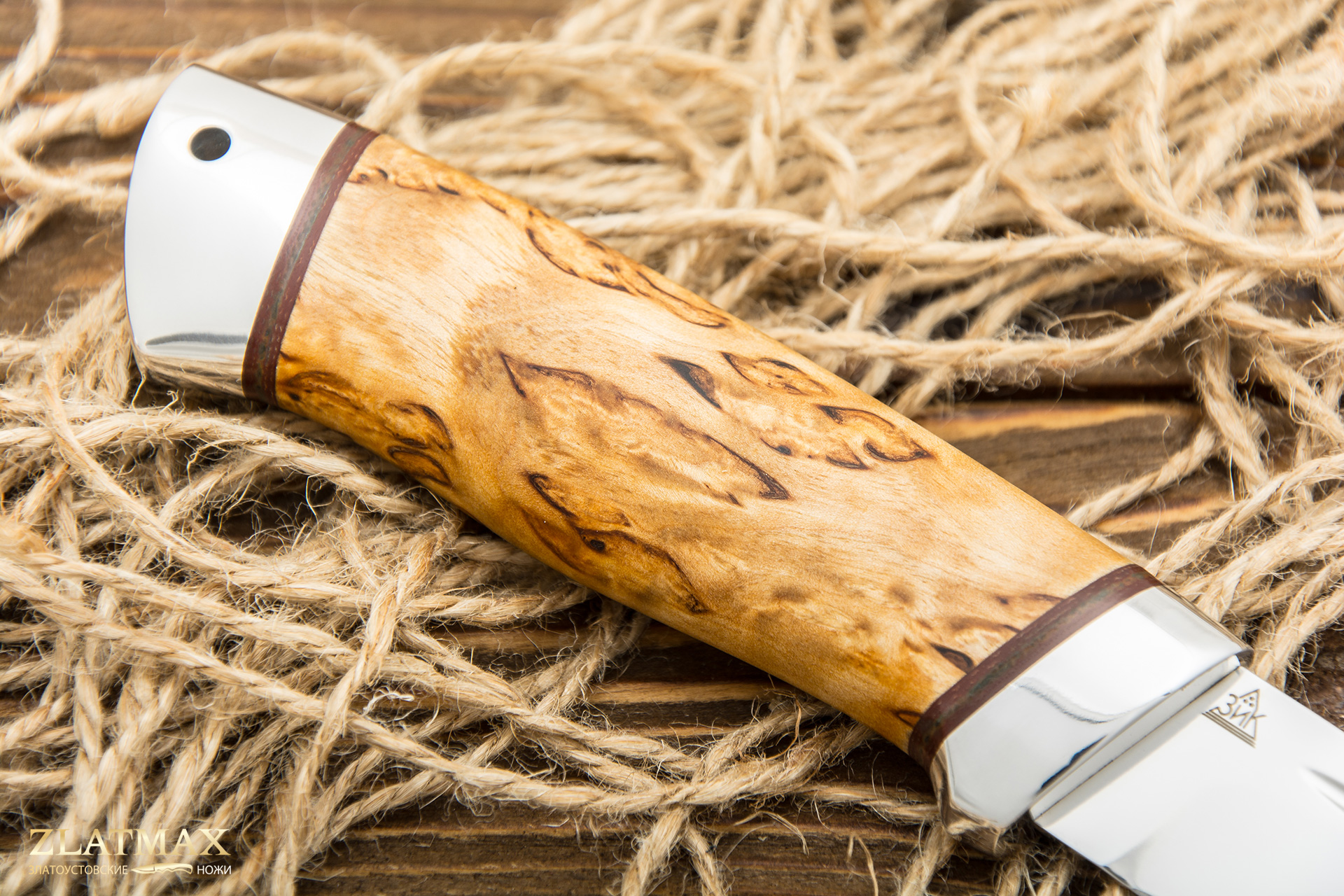 Узор и фактура каждого изделия уникальны, они не повторяются. Карельская береза позволяет создавать уникальные рукояти, которые притягивают взгляд и становятся любимым экземпляром в коллекции.
