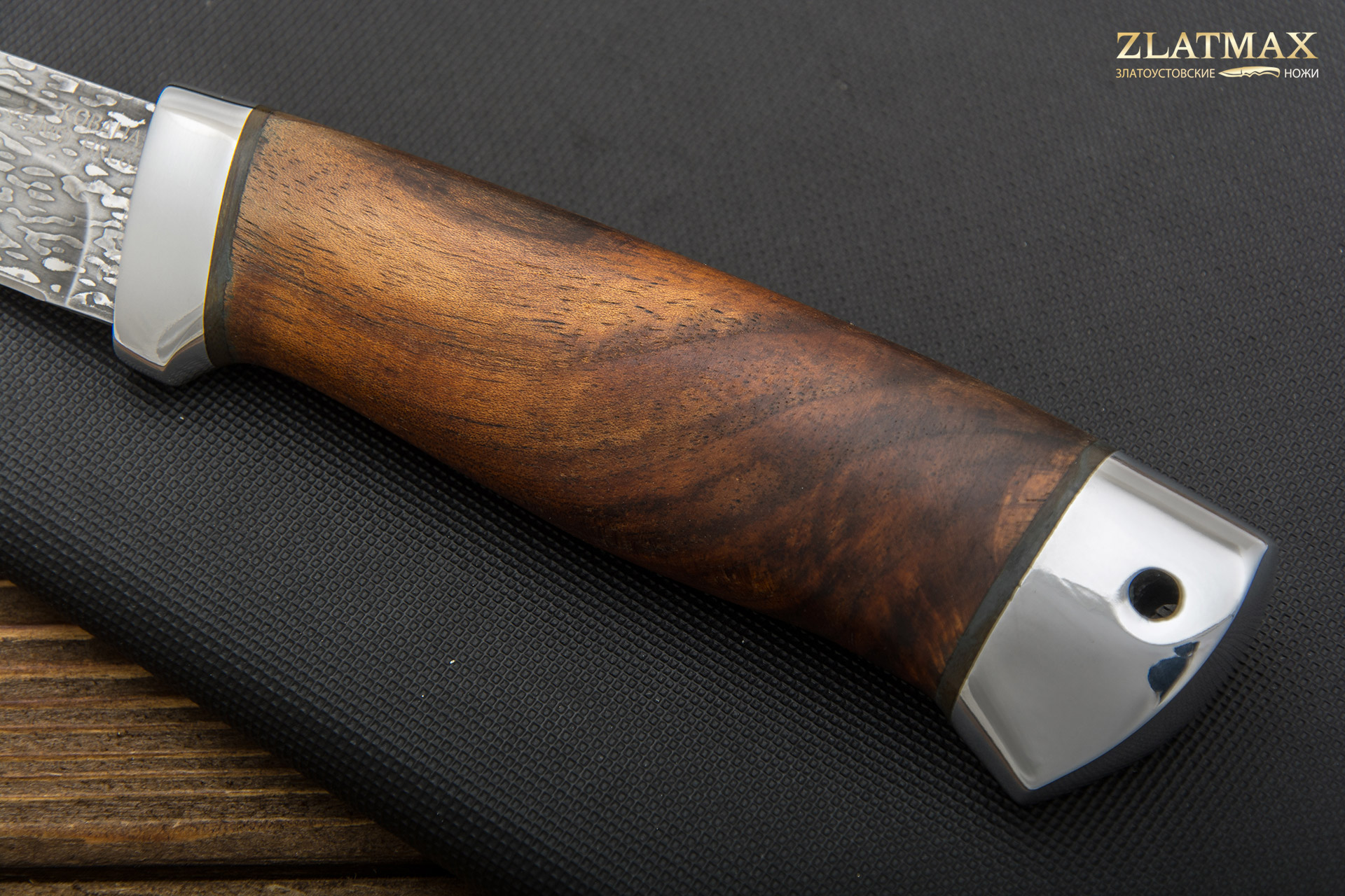 Такая рукоять будет легкой, долго прослужит своему обладателю, не будет скользить в руке. При низких температурах может оставаться холодной. Стоит помнить, что орех не любит большие нагрузки, поэтому таким ножом лучше не стучать по другим предметам и следить за тем, чтобы такой нож не падал с большой высоты.