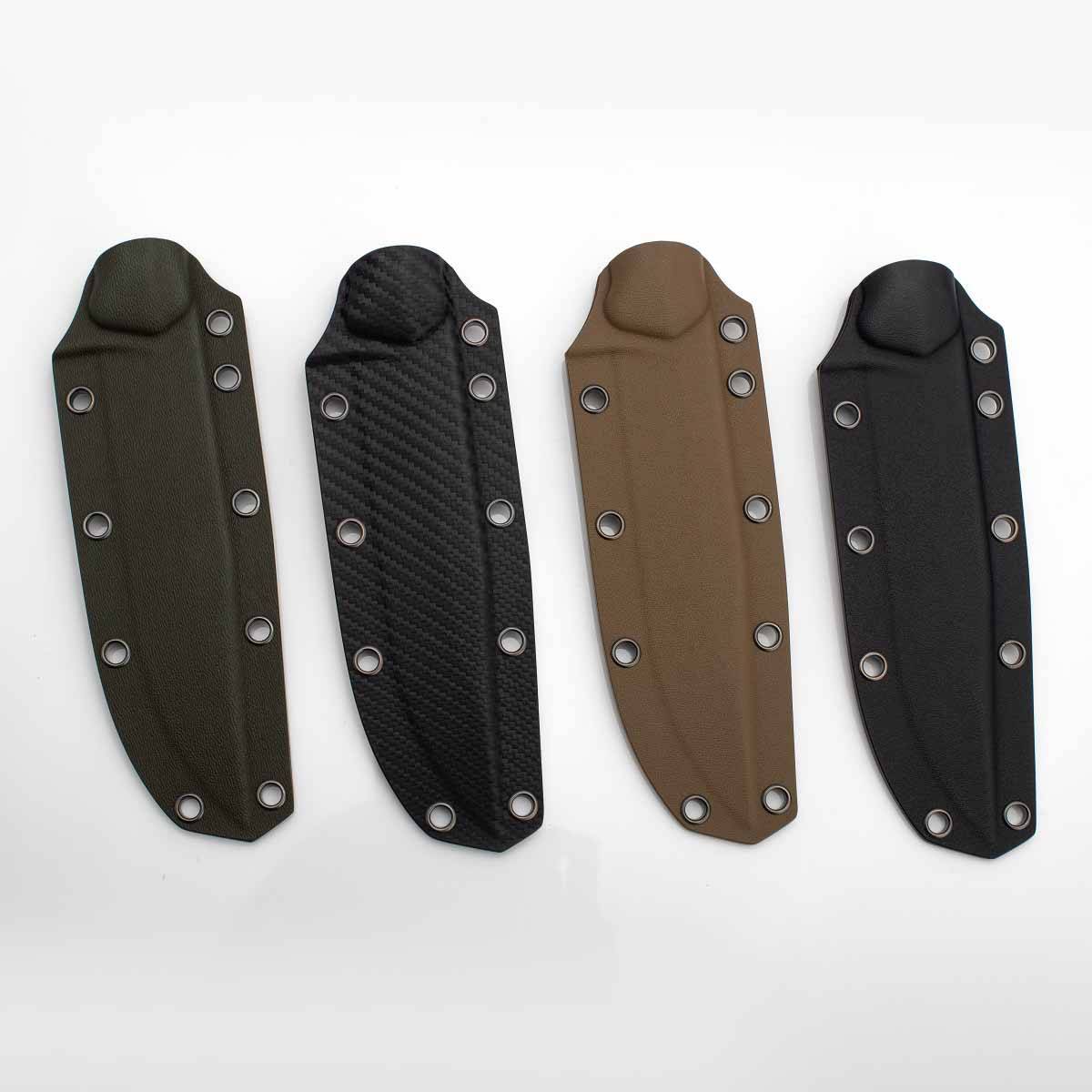 Ножи из линейки «ТЕХНО» (Жулан-Т, Леший-Т, Стриж-Т, Ронин-Т) стандартно комплектуются практичными кайдексовыми ножнами. При желании, заказчики могут заменить кайдексовые ножны на ножны из хольстекс карбона (с доплатой) и дополнительно заказать крепление Tek-Lok для ножен.