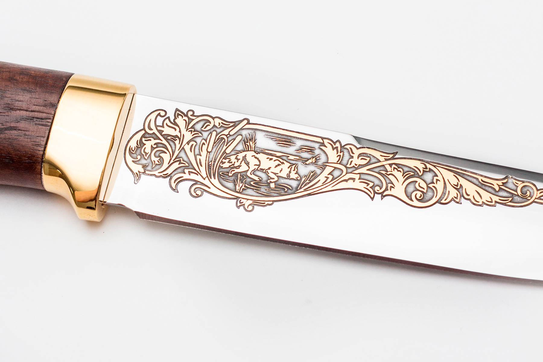 Нож Лиса (40Х10С2М (ЭИ-107), Граб, Латунь, Золочение)