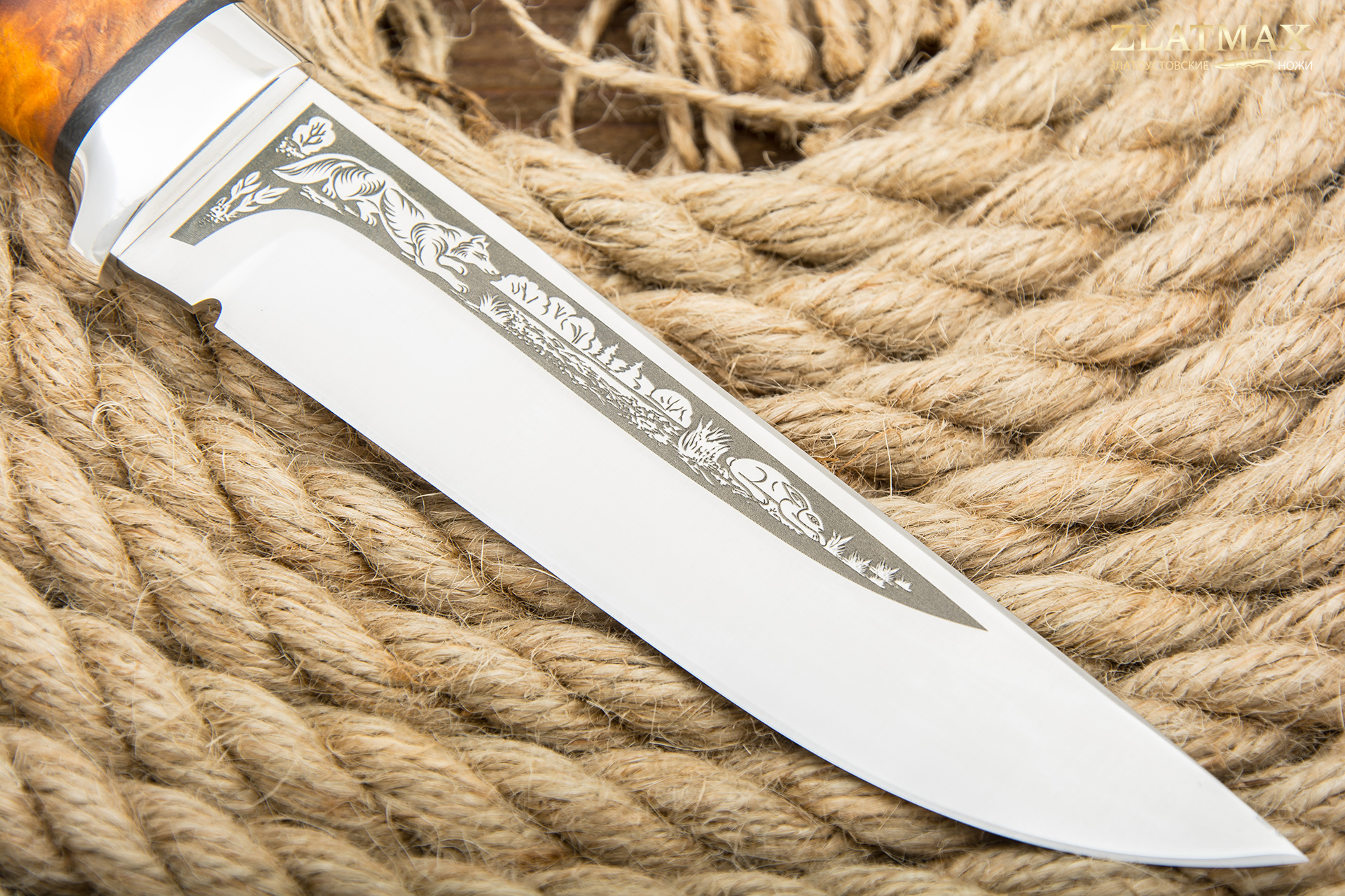 «Лису» можно назвать удачным творением производства, судя по неизменному спросу у потребителей. Обушок этого ножа к острию немного приспущен, имеет средний размер среди ассортимента и изумительно тонкое, но острейшее лезвие. Название этого ножа было точно подобрано к его практическим характеристикам. Но, не смотря на то, что этот инструмент «не кричит» о своем дизайне, он довольно прост и не имеет ничего лишнего, спрос на него всегда будет актуальным. Без излишеств – надежность!