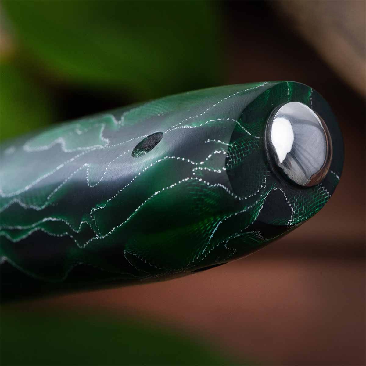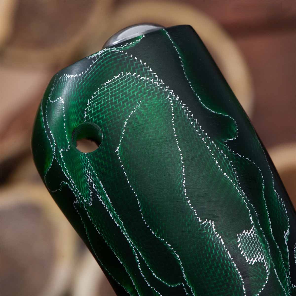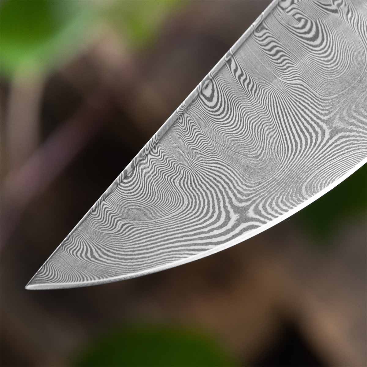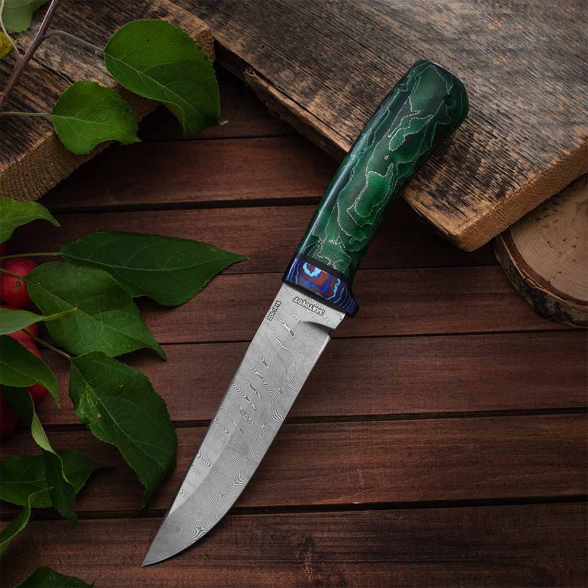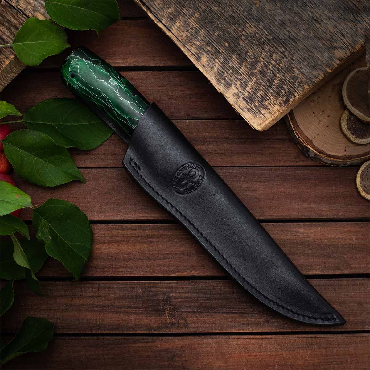 Средний по размерам, универсальный, легкий и прочный нож с клинком, имеющим чуть приспущенный к острию обушок. Вогнутые линзовидные спуски на две трети ширины клинка образуют тонкое, изумительно режущее лезвие. Толщина обуха в 2,6 мм позволяет оставить приличную голомень, что придает ему дополнительную прочность. Эргономичная форма рукояти идеально ложится в любую ладонь. А оптимальной величины гарда не дает соскользнуть пальцам при резах от себя. Монтаж клинка накладной, неразборный. Замечательный выбор для большинства видов работы в лесу. Пользуется неизменной популярностью у покупателей.
