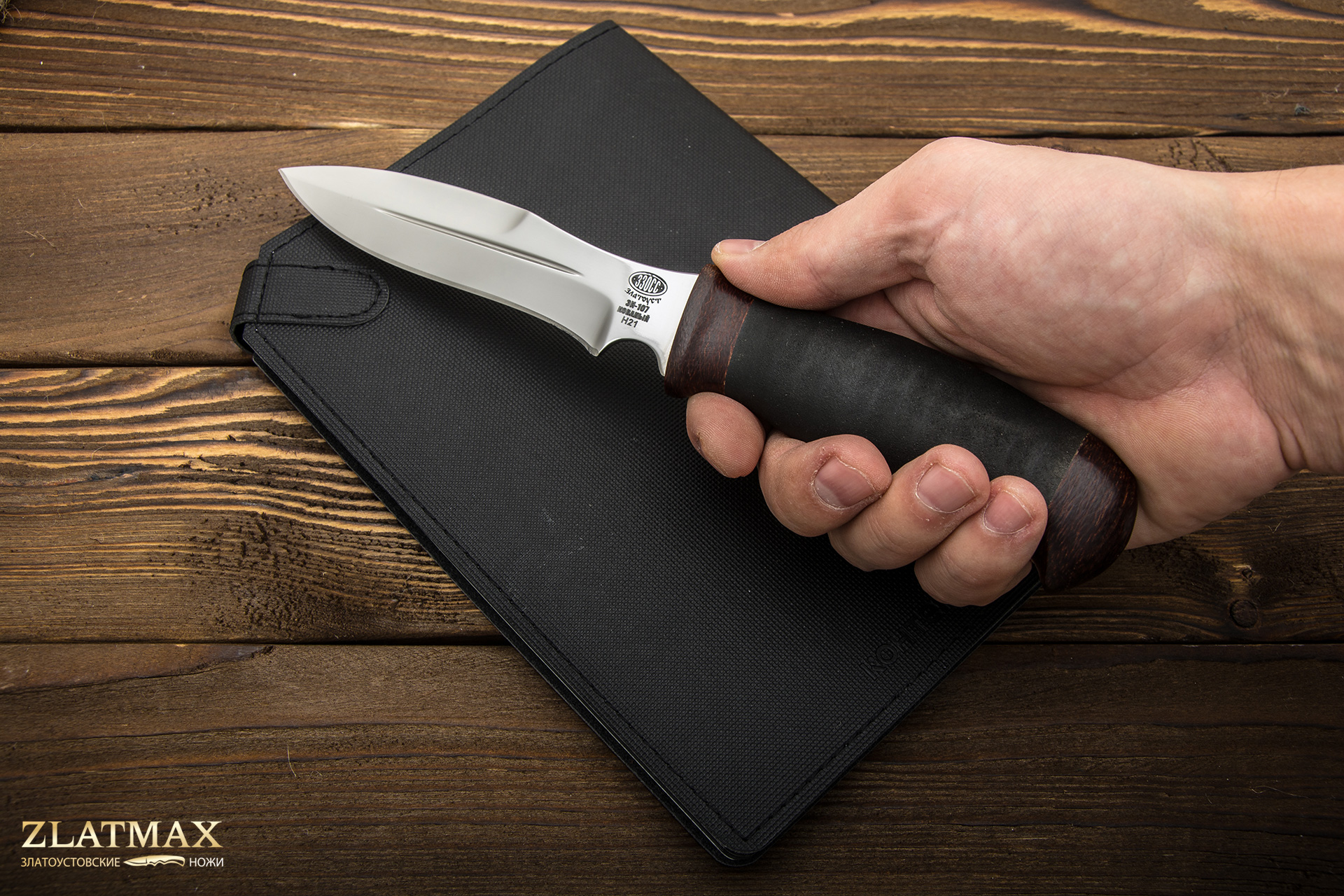 Великолепный инструмент Н21, благодаря своей форме, можно уверенно называть тактическим ножом. Ведь его внешняя характеристика типа клинка под «Кинжал» говорит о том, что им легко совершать колющие удары. Благодаря имеющимся долам на орудии, они заметно делают его легким и невесомым, при этом сохраняется отличная прочность. Чтобы совершать инструментом точные работы, на основании клинка был выведен специальный радиус под палец.