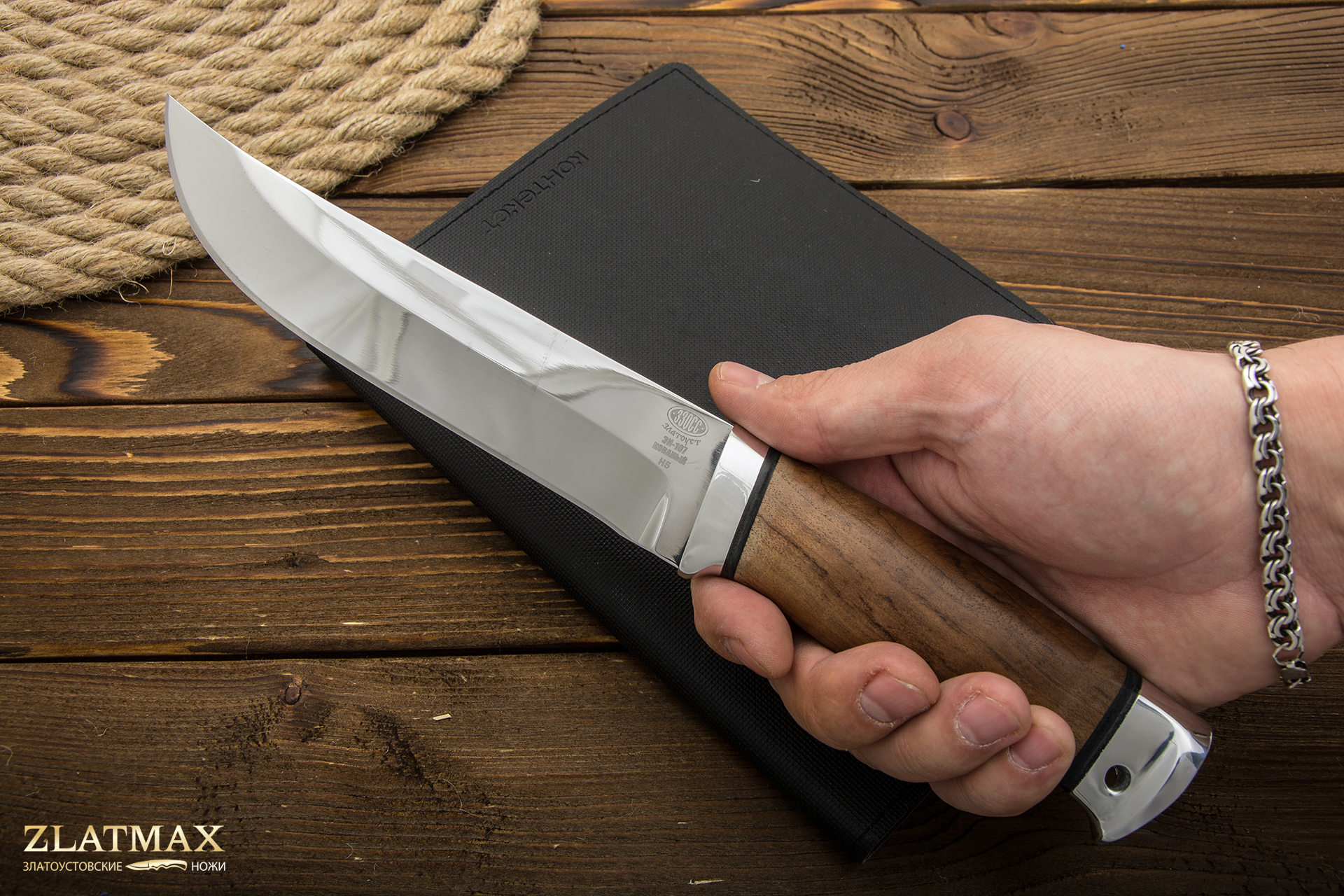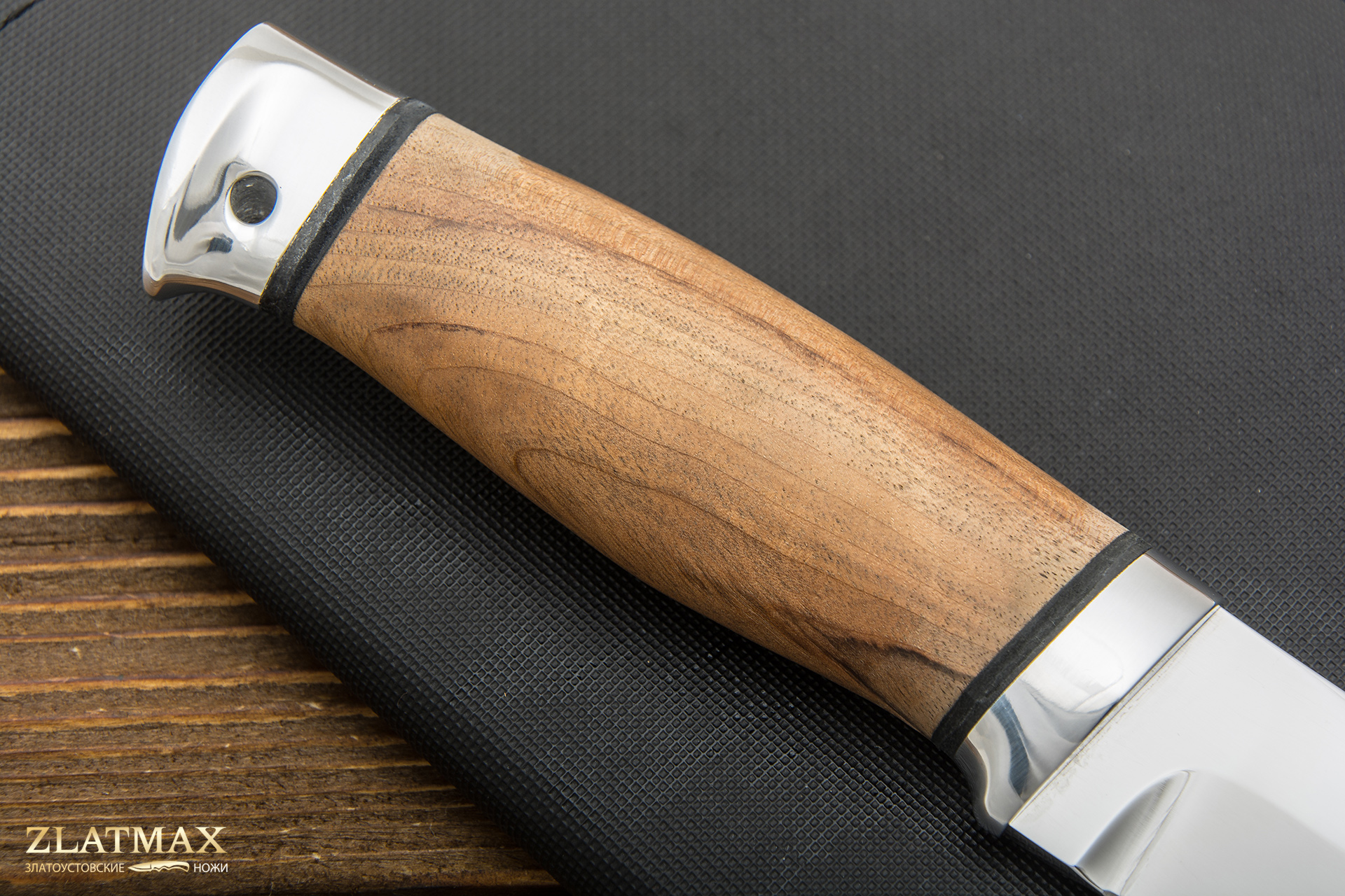 Такая рукоять будет легкой, долго прослужит своему обладателю, не будет скользить в руке. При низких температурах может оставаться холодной. Стоит помнить, что орех не любит большие нагрузки, поэтому таким ножом лучше не стучать по другим предметам и следить за тем, чтобы такой нож не падал с большой высоты.