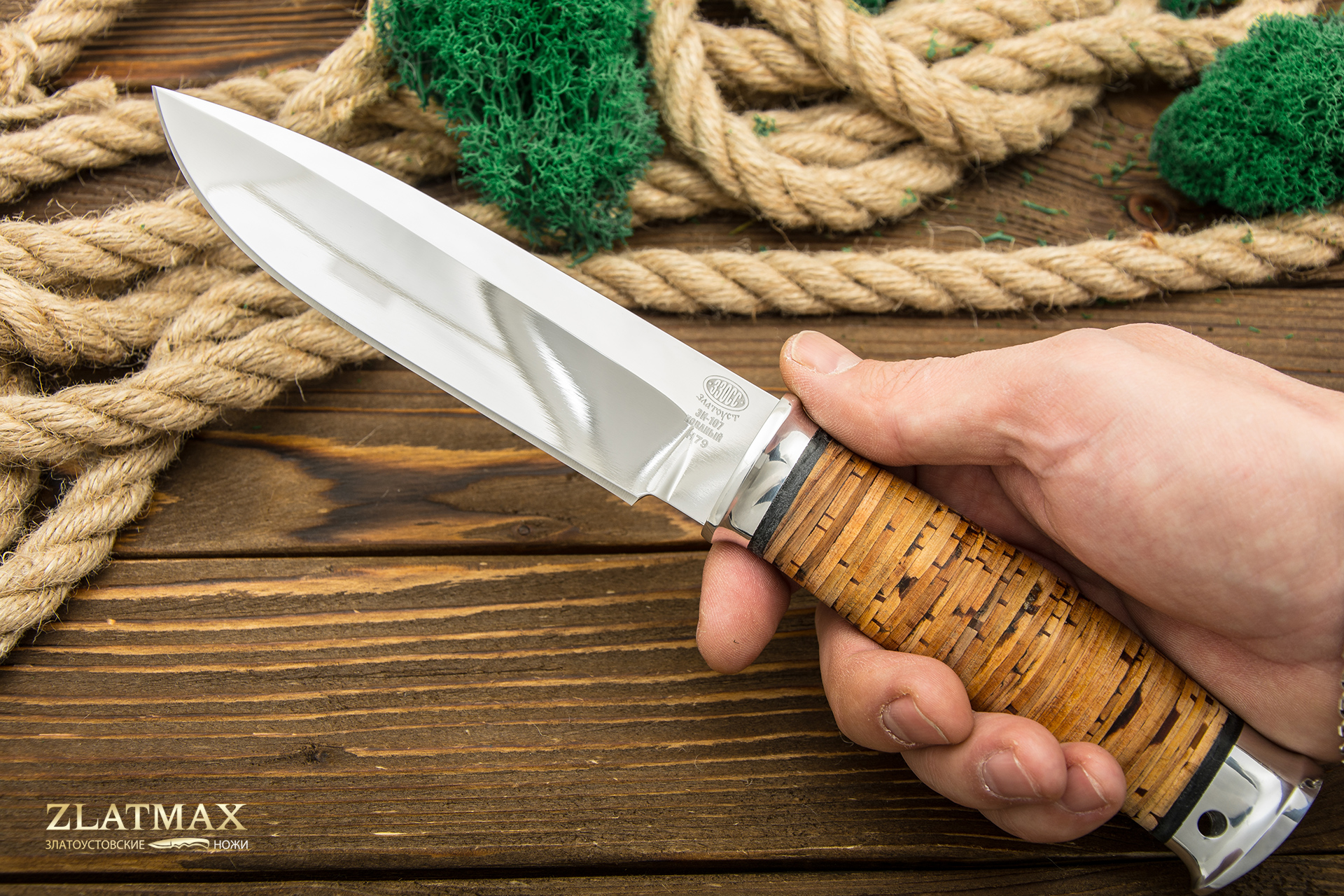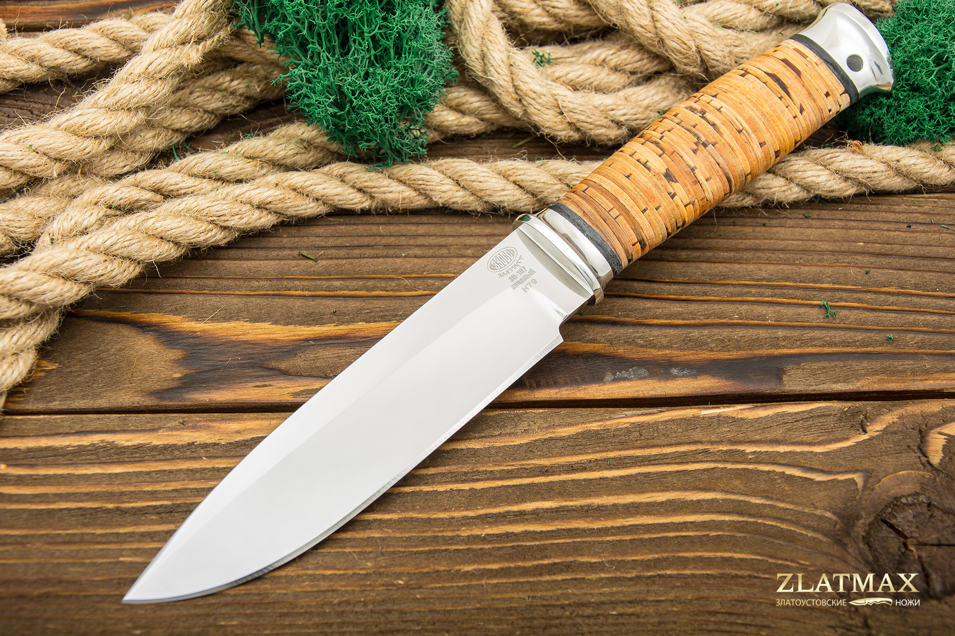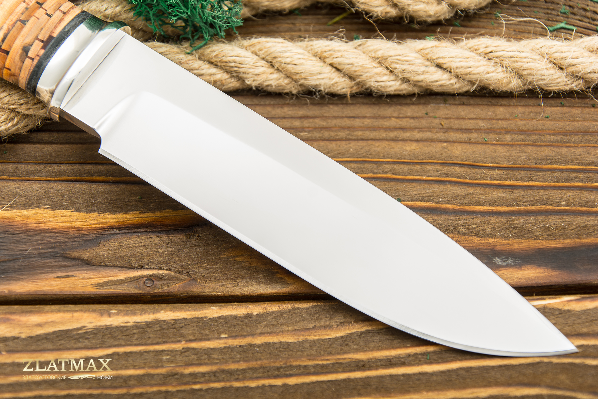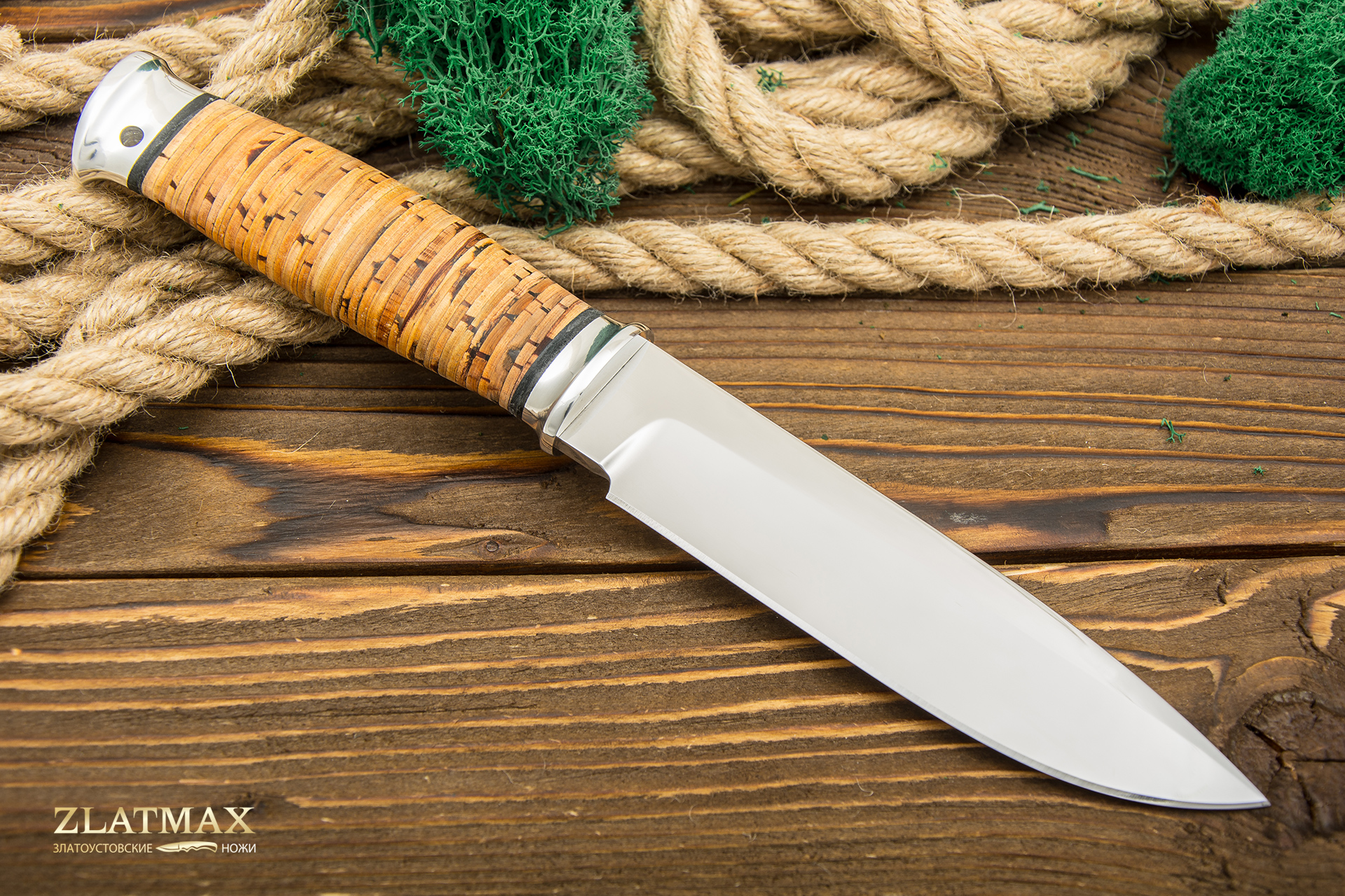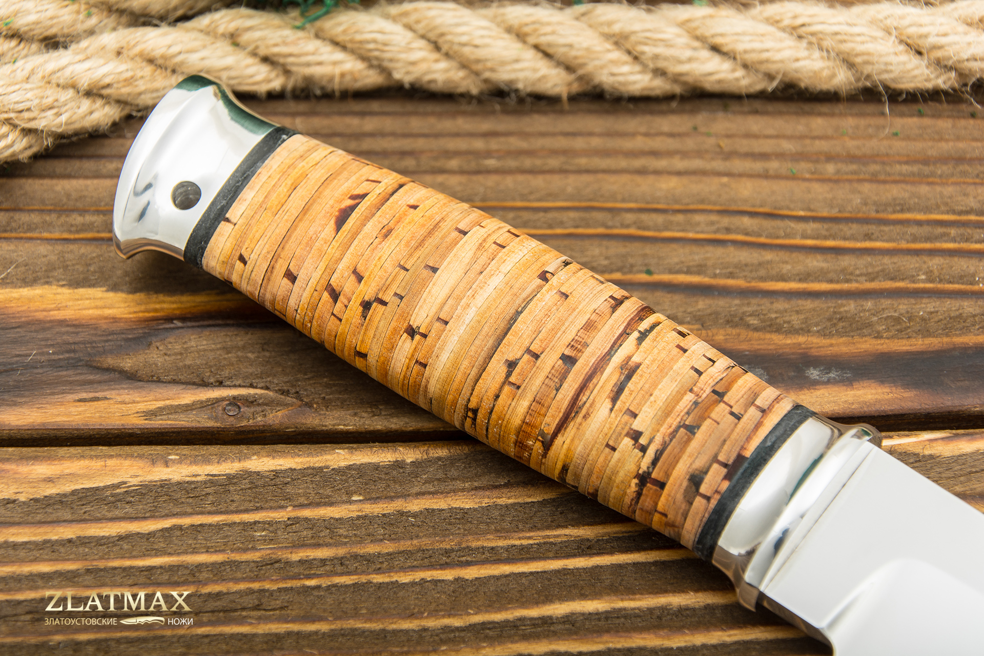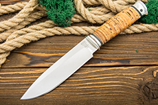 Особенность бересты - она имеет низкую теплопроводность, поэтому пользоваться изделиями из нее комфортно и в теплое, и в холодное время года. Рукоять ножа, выполненная из бересты, не будет скользить в руке, гарантирует надежный хват, даже если она испачкана в чем-то.