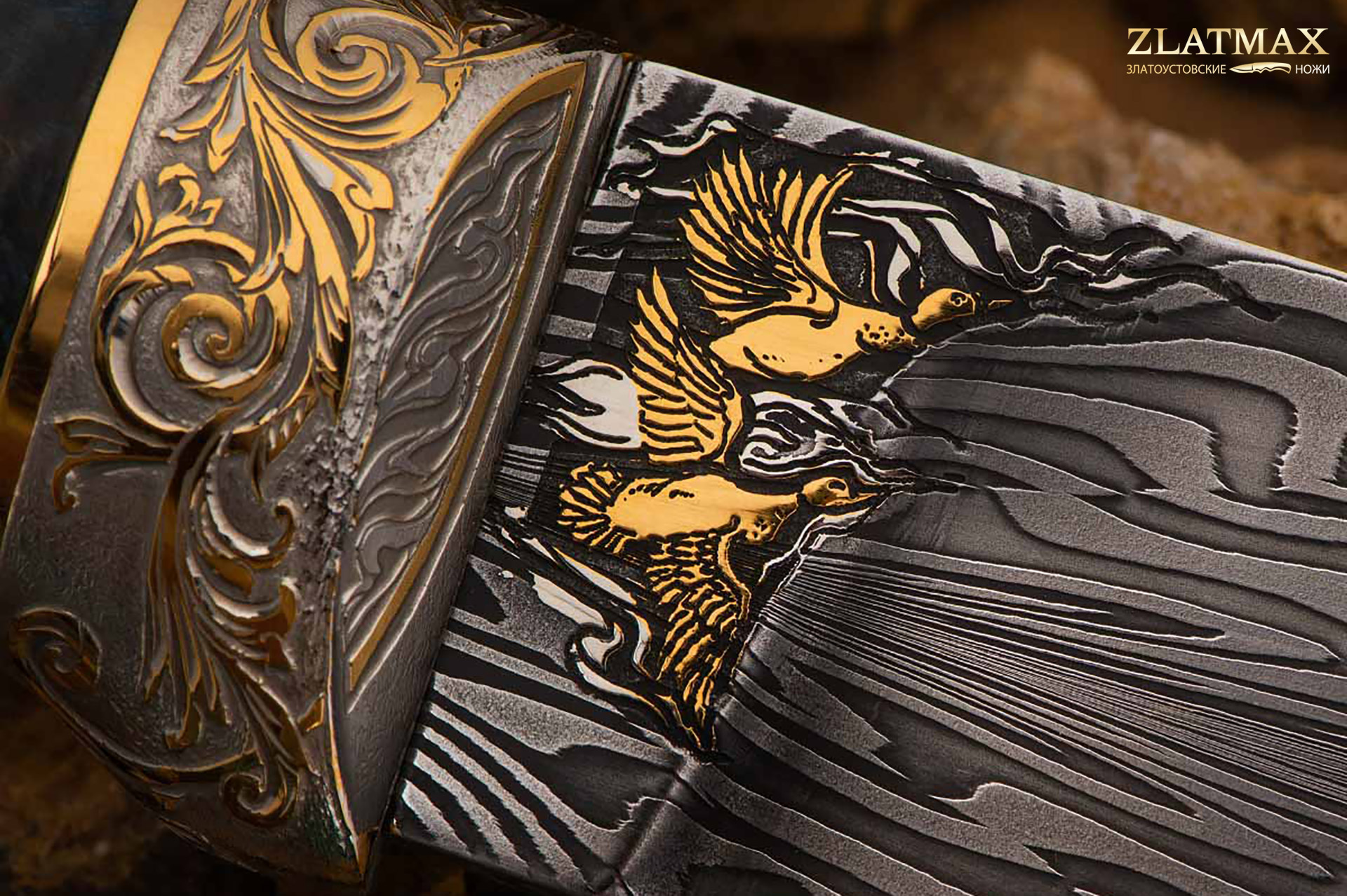 Опытные оружейники и художники Компании «АиР» учитывают особенности оружия, соразмеряя его украшение и практическое назначение ножа. Для охотников и туристов характерен некоторый консерватизм в восприятии художественных достоинств ножей. Поэтому излюбленными и наиболее удачными приемами украшения таких ножей остаются классические охотничьи мотивы, а разнообразие оформительских вариантов достигается за счет различных техник – травления, золочения, гравировки, то есть полного набора приемов создания златоустовской гравюры на металле.