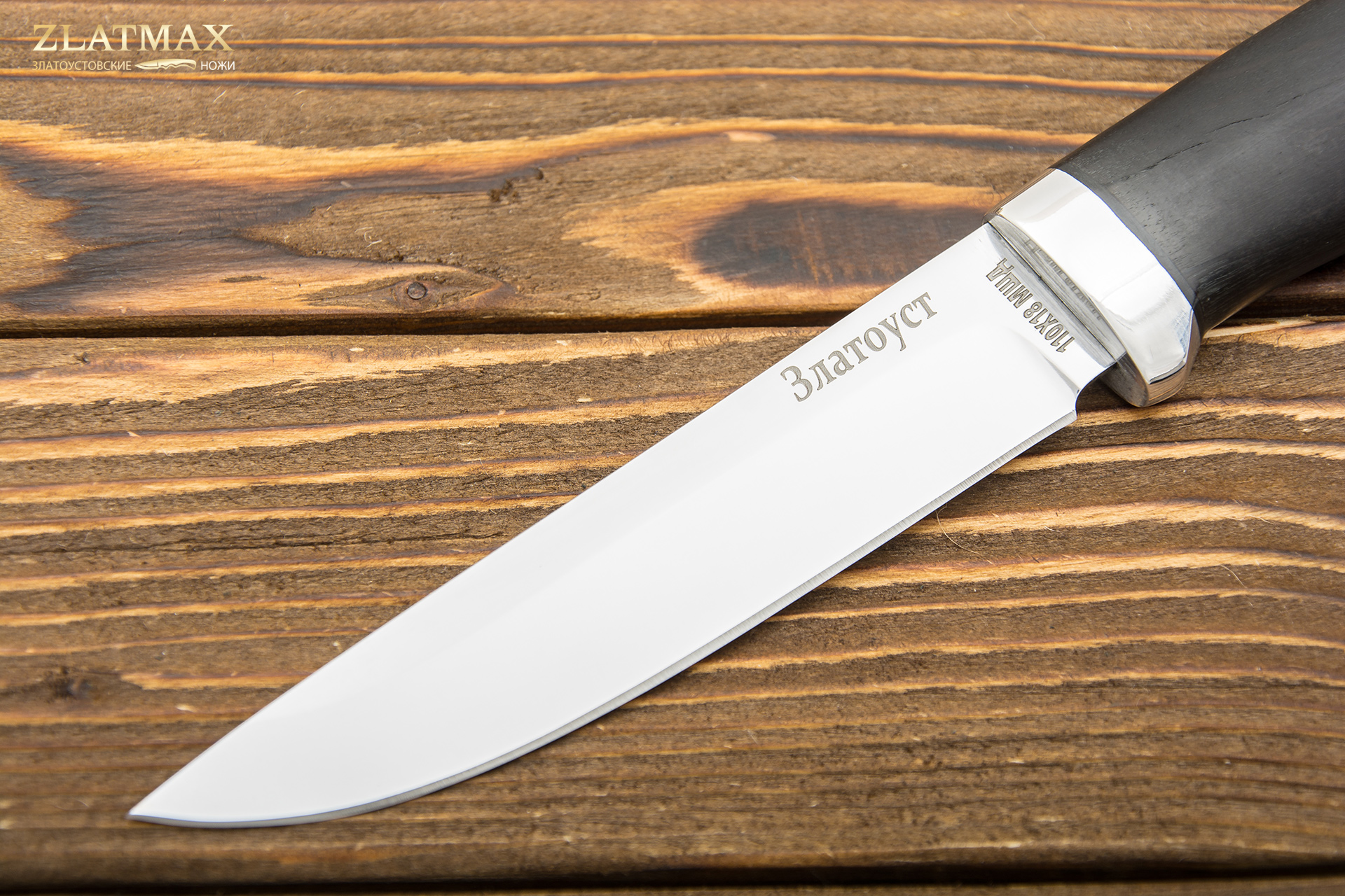Древесина карельской березы смотрится очень эффектно на рукояти ножа. Необычная текстура материала и красивая палитра оттенков делают вид орудия очень презентабельным.