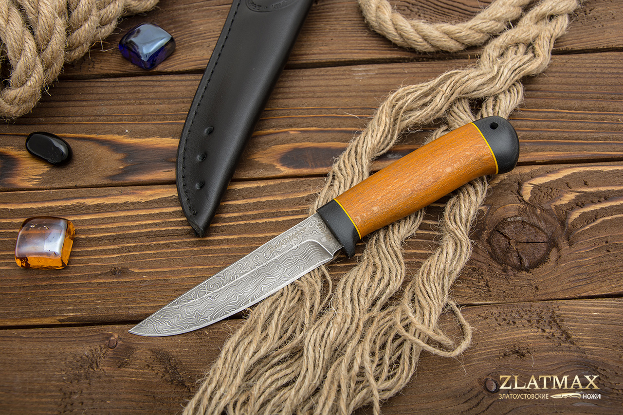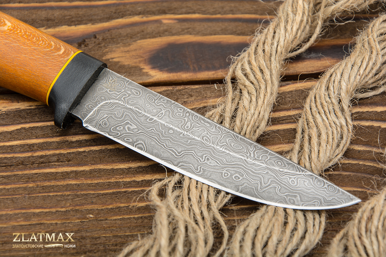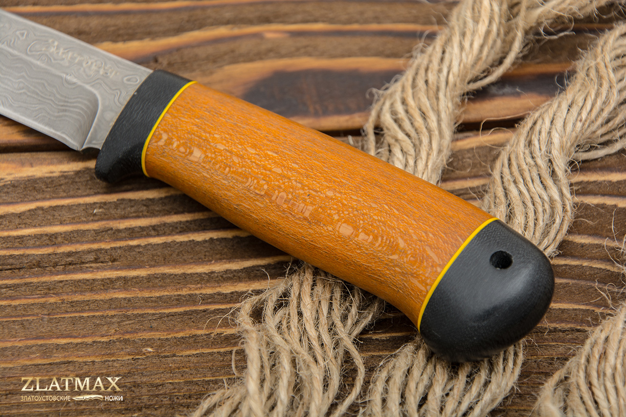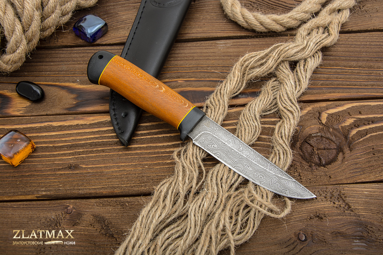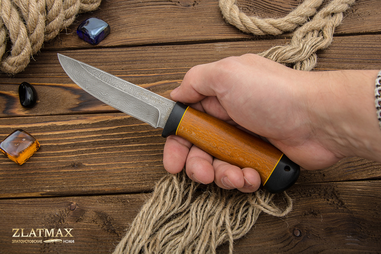 Нож из дамасской стали Пустельга 2 (Дамаск ZDI-1016, Стабилизированная древесина, Текстолит)
