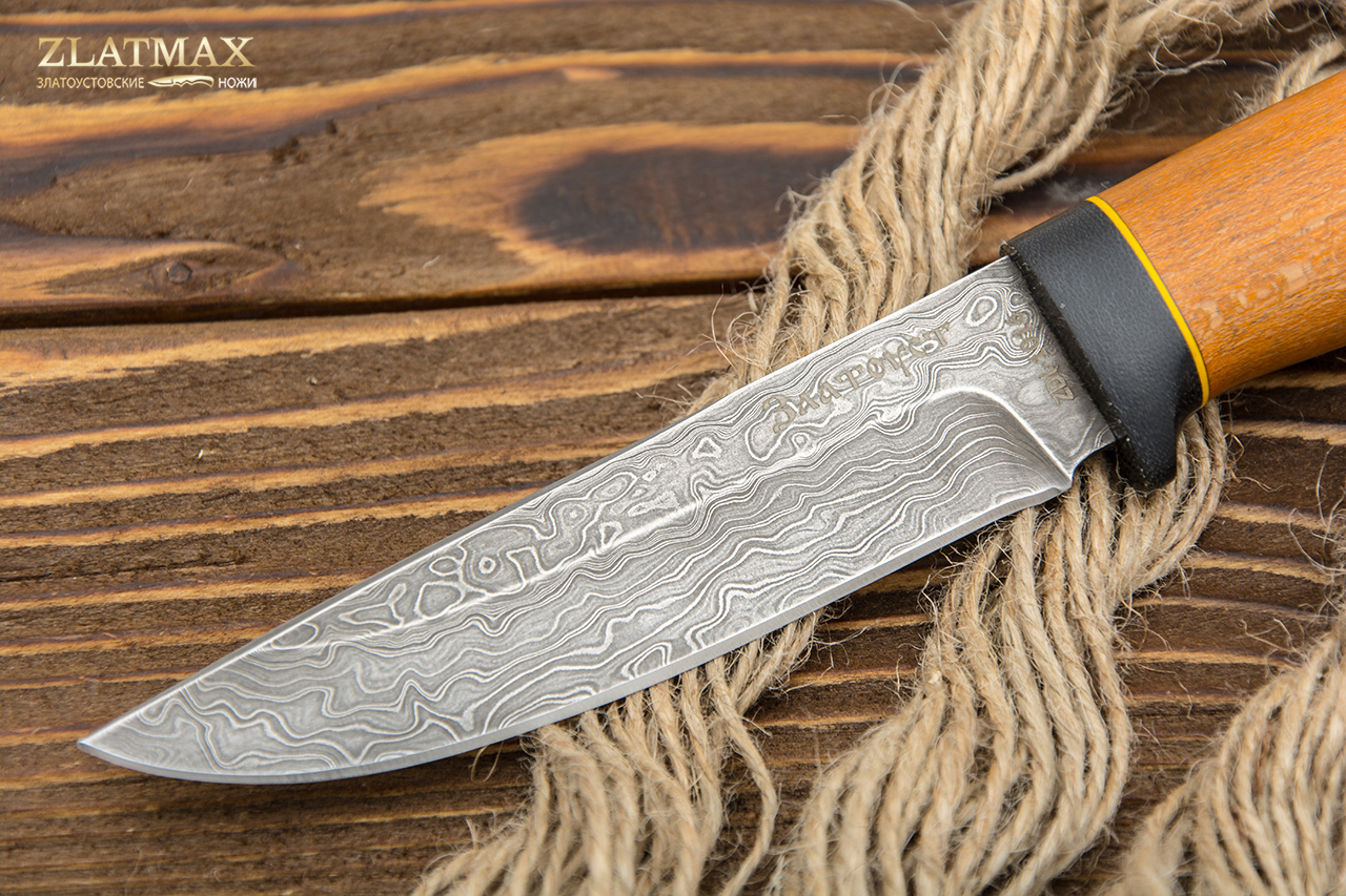 Нож из дамасской стали Пустельга 2 (Дамаск ZDI-1016, Стабилизированный бук, Текстолит)