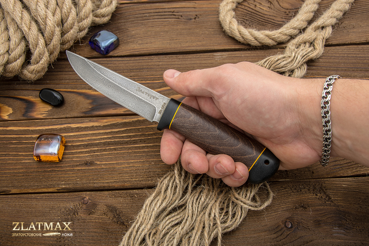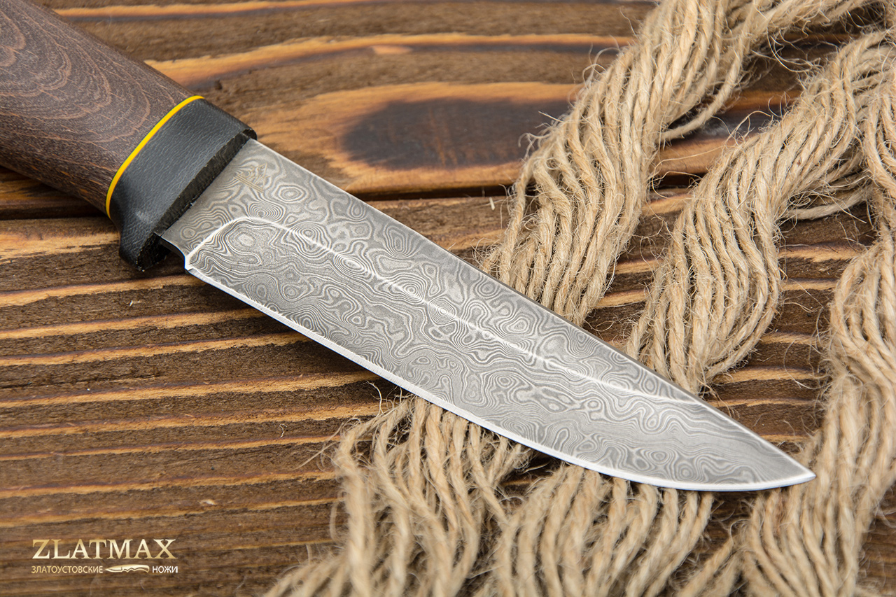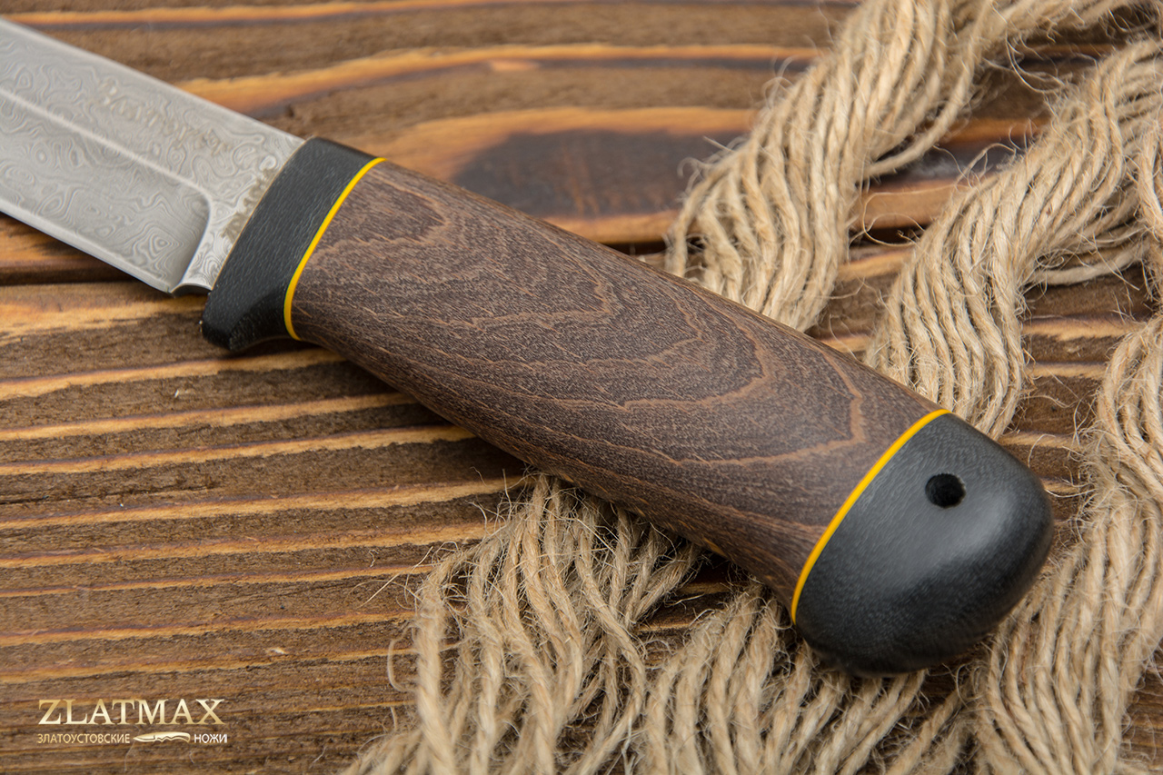 Нож из дамасской стали Пустельга 2 (Дамаск ZDI-1016, Стабилизированная древесина, Текстолит)