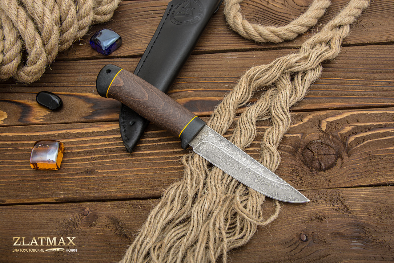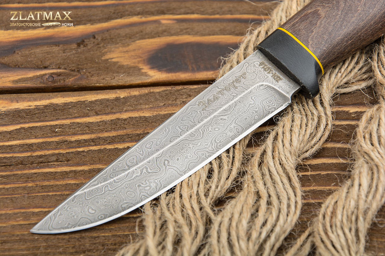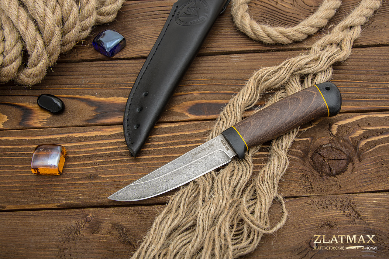 Нож из дамасской стали Пустельга 2 (Дамаск ZDI-1016, Стабилизированная древесина, Текстолит)