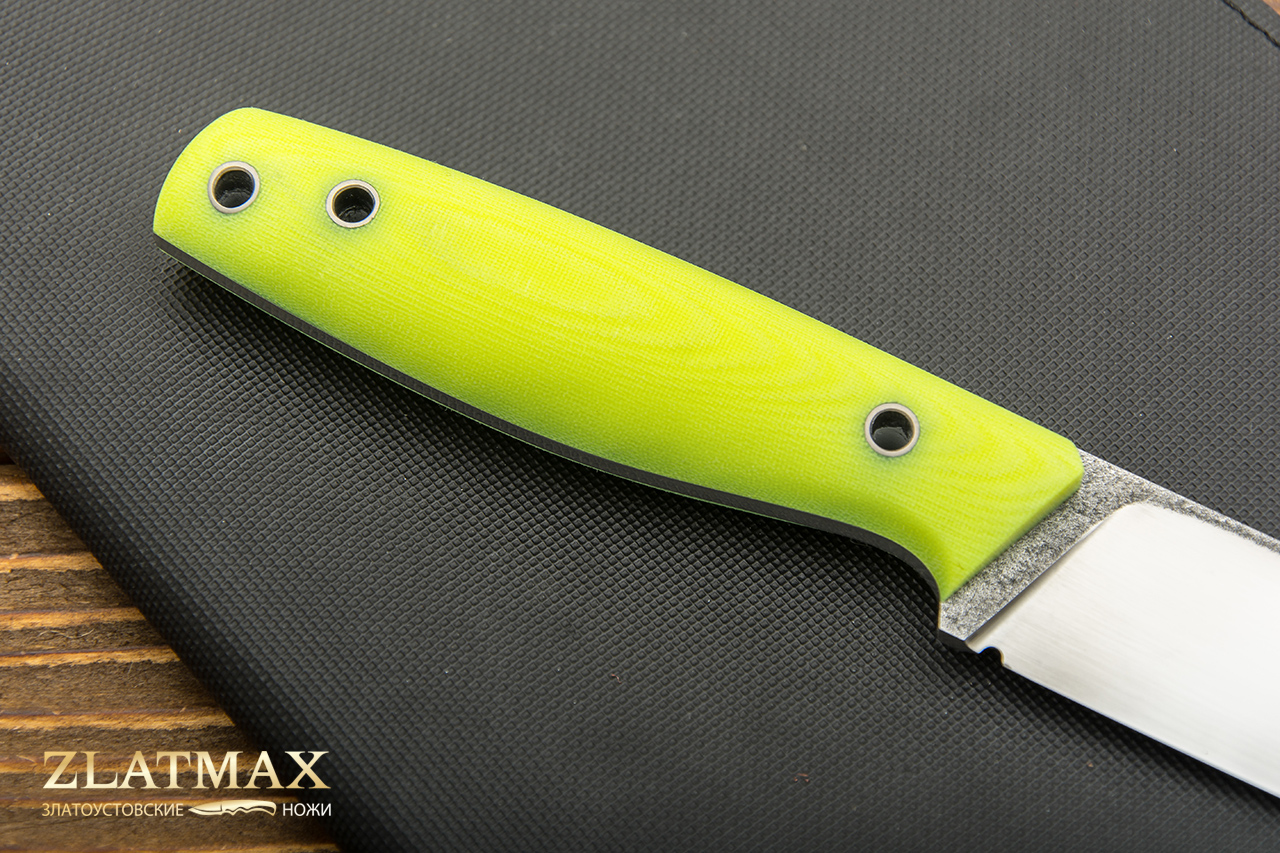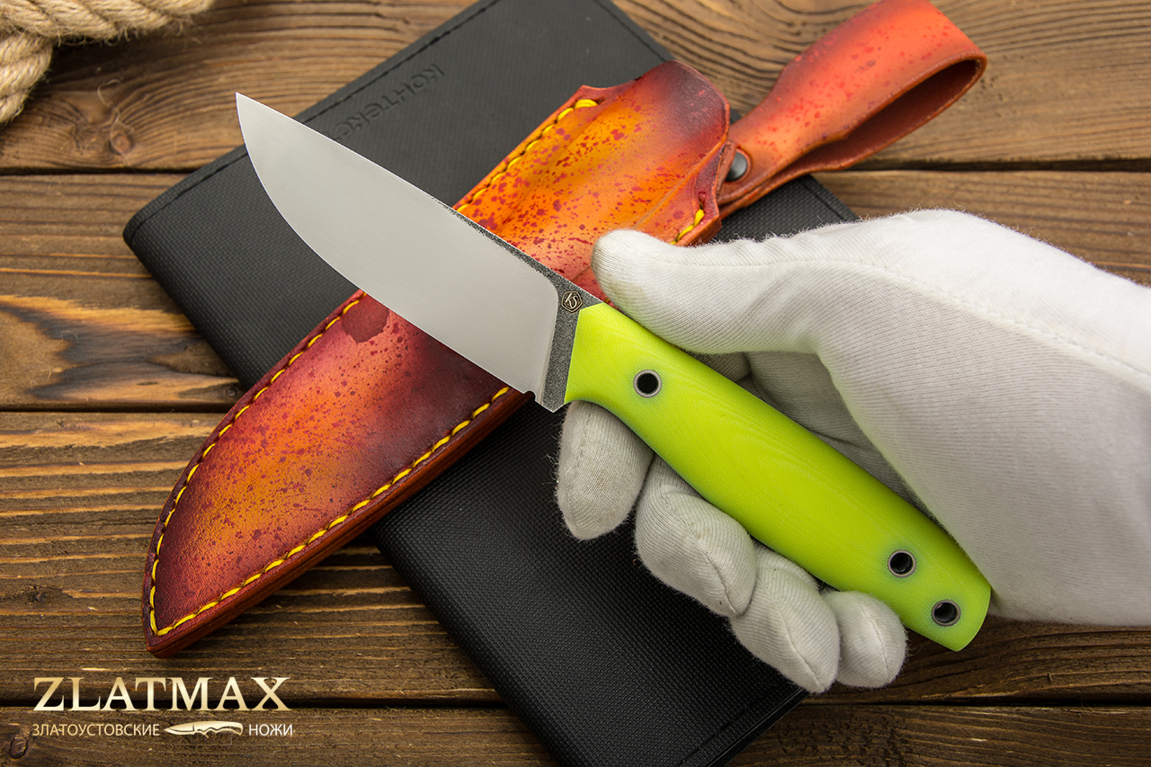 Нож с рукоятью из G10 прослужит вам долго, его будет удобно держать в руке, рукоять не будет скользить. Изделие выглядит дорого и представительно.