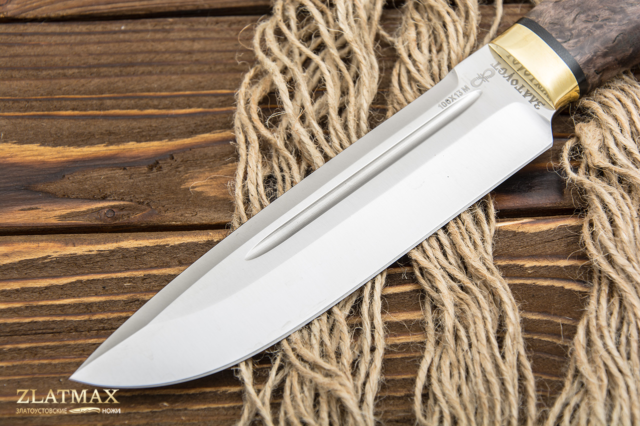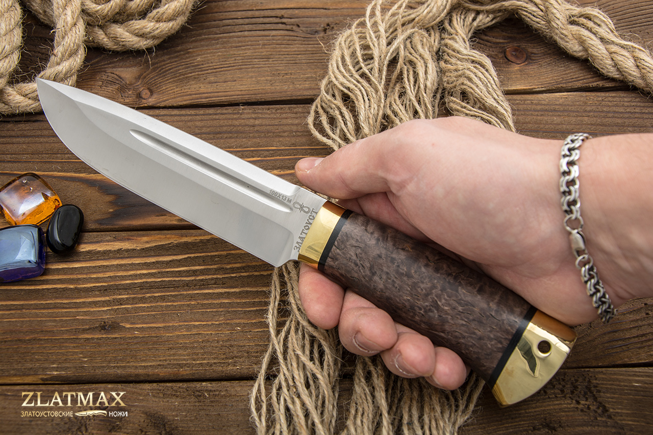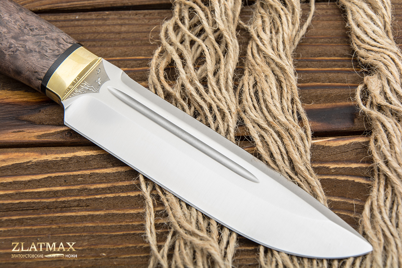 Эта модель ножа несокрушима своими внешними данными, особенно привлекает внимание фальшлезвие, которое протягивается по всей длине обуха. Имеет толщину 6 мм., но не было бы такой прочности без внушительных дол по обеим сторонам. Что уж говорить о его режущих качествах, благодаря которым нож эффективно используется не только в резке, но и в рубке. Впечатляет разносторонность «Селигера»: Вы без труда разделаете им добытую тушу на охоте, сможете обустроить ночлег в лесу, нарубить веток и это не все, на что он способен!
