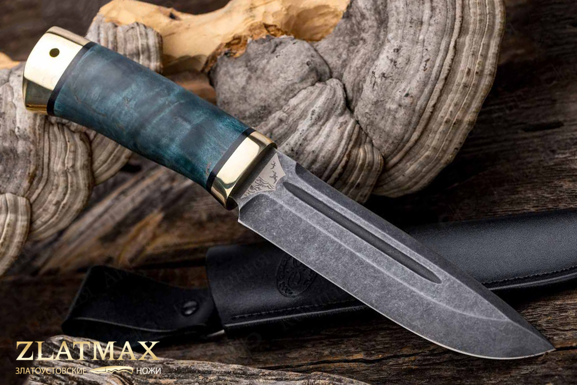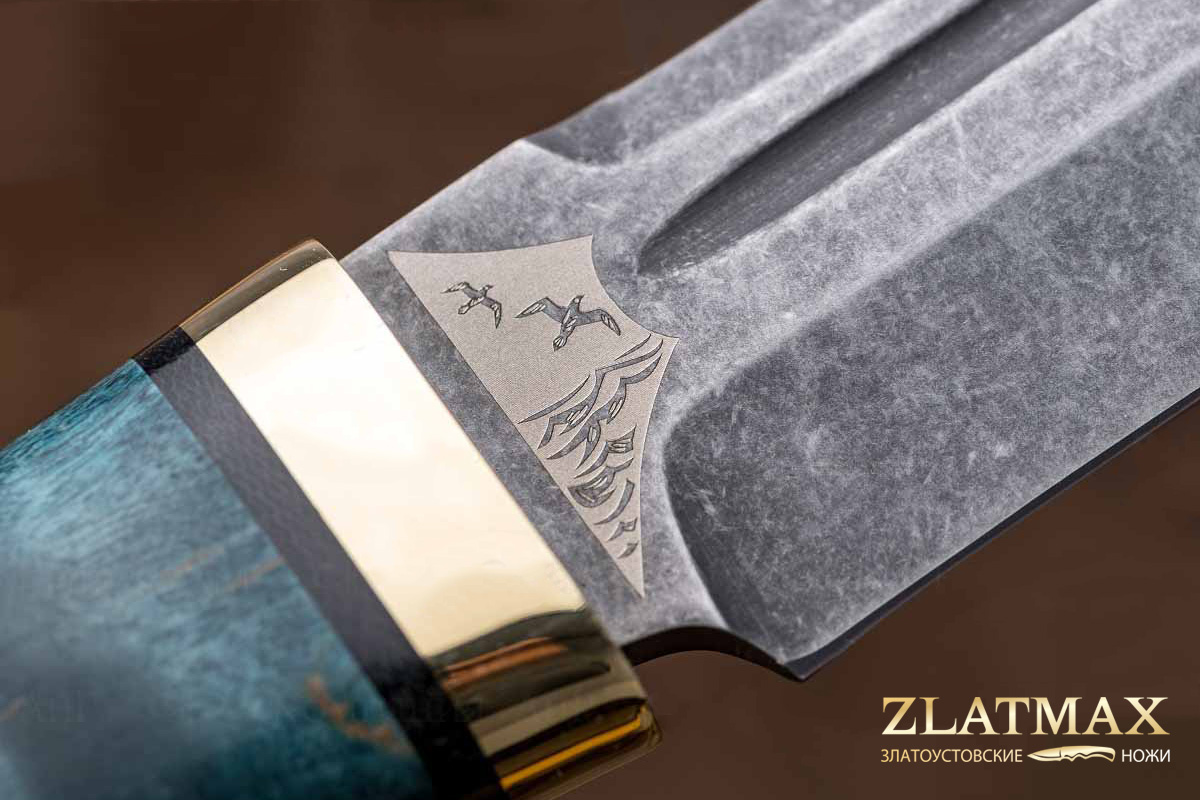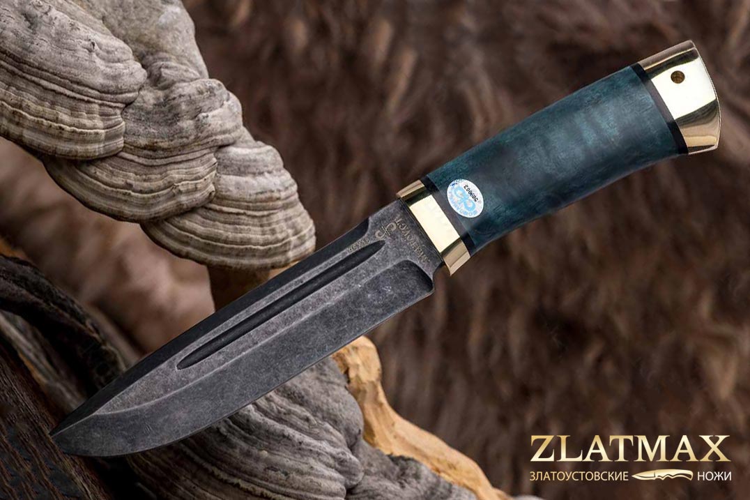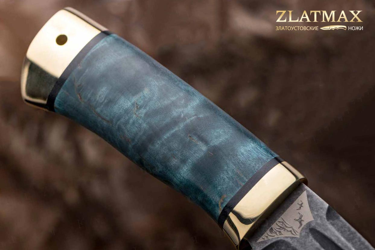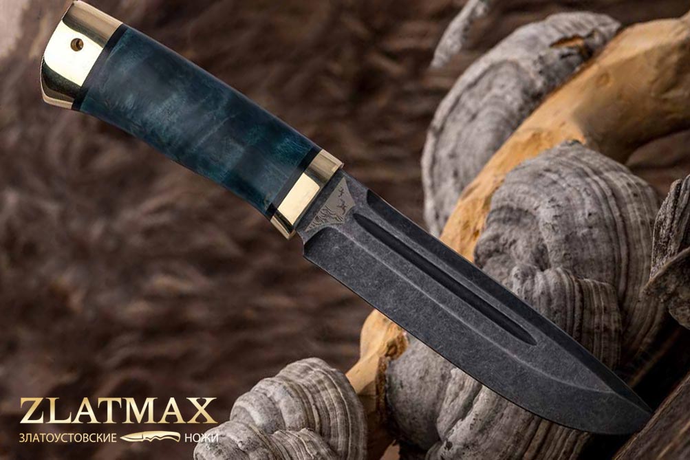 Древесина карельской березы смотрится очень эффектно на рукояти ножа. Необычная текстура материала и красивая палитра оттенков делают вид орудия очень презентабельным.