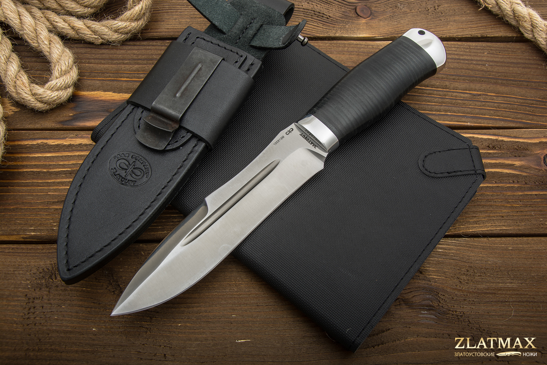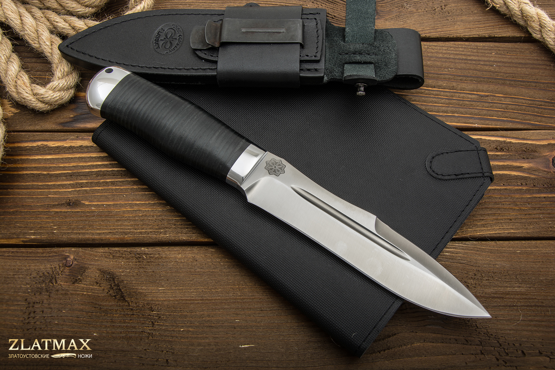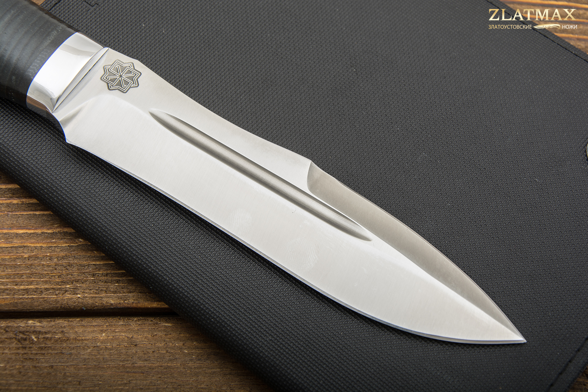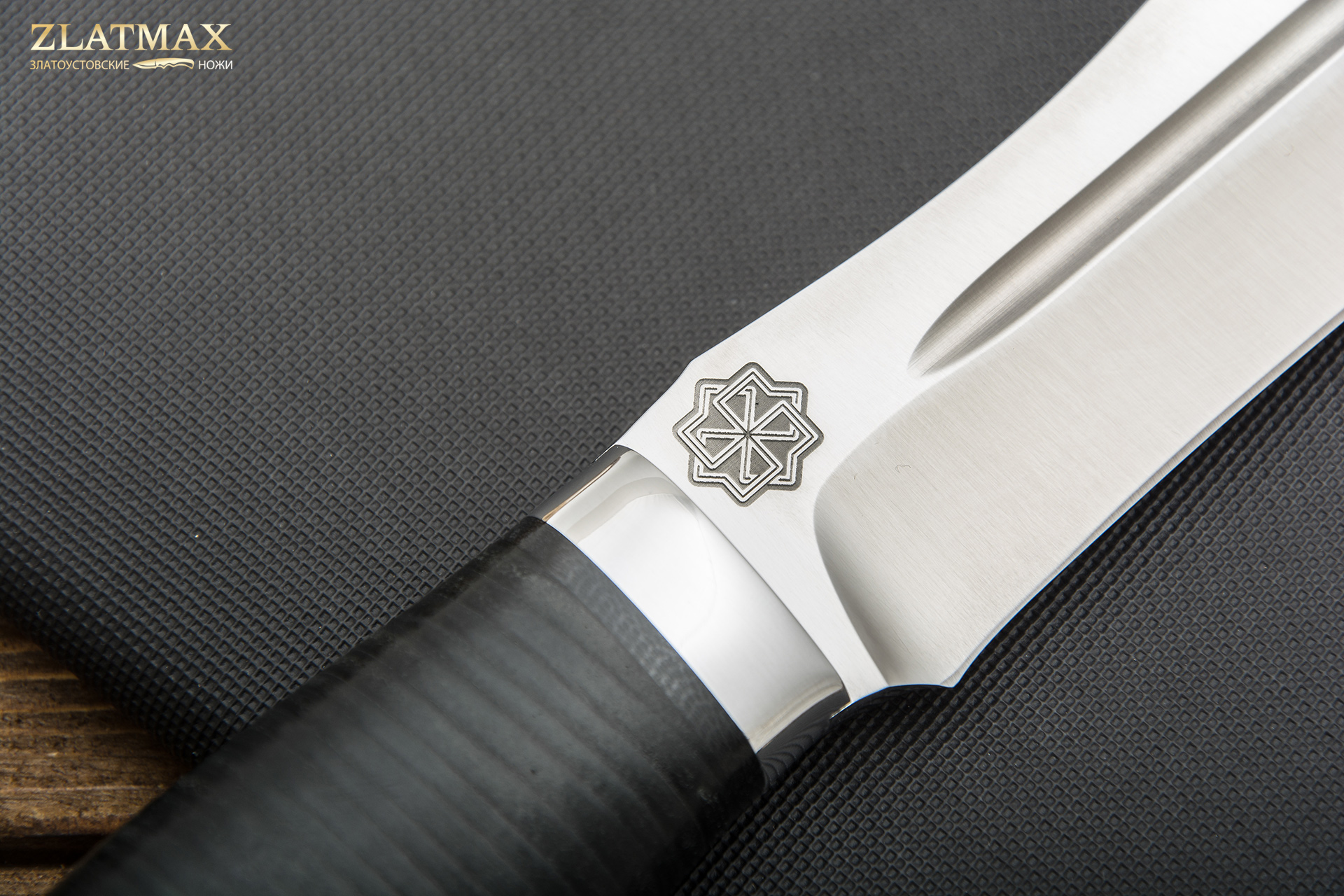 Хищный, массивный нож, который мы рекомендуем использовать туристам, любителям проводить время на природе, ну и, конечно же, охотникам. Шестимиллиметровый обух делает инструмент несокрушимым, как внешне, так и по режуще-рабочим качествам. Два дола по обеим сторонам добавляют уверенности в прочности такого ножа. До половины обуха протягивается фальшлезвие, которое пригодится при рубке костей, а толстый обух может помочь при необходимости забить гвоздь. «Скорпион» выполнен в современном стиле, отлично режет колбасу и хлеб, не ломая их на куски, а вот красиво и тонко нарезать сыр нужно приноровиться. Им легко настрогать лучину для костра, прорубить заросли и даже молодые березы для устройства ночлега в экстремальной ситуации. На рукояти имеется отверстие под темляк.