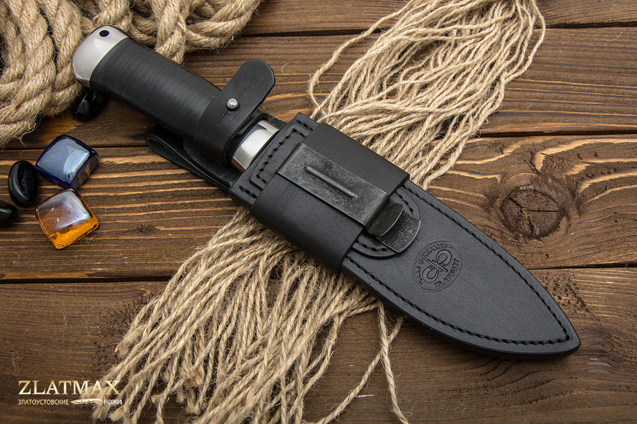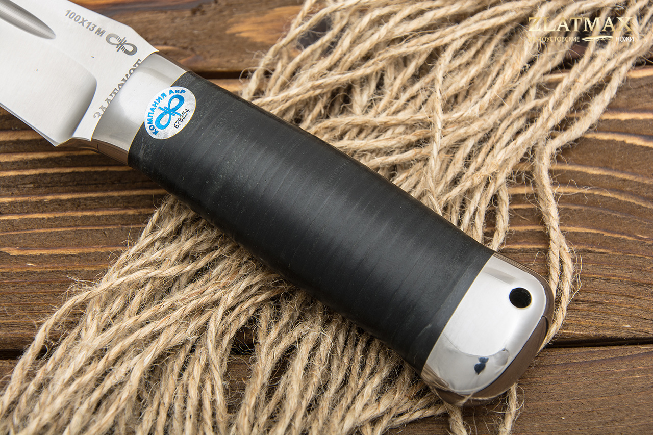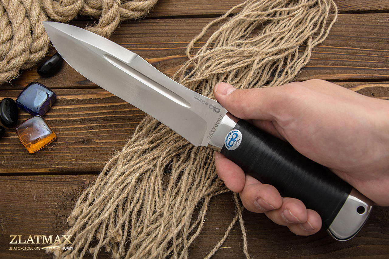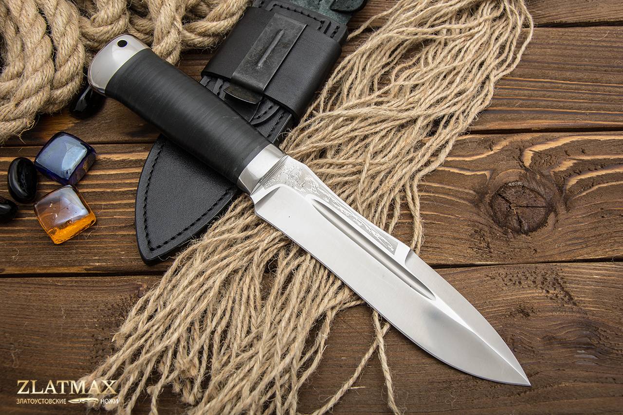 Хищный, массивный нож, который мы рекомендуем использовать туристам, любителям проводить время на природе, ну и, конечно же, охотникам. Шестимиллиметровый обух делает инструмент несокрушимым, как внешне, так и по режуще-рабочим качествам. Два дола по обеим сторонам добавляют уверенности в прочности такого ножа. До половины обуха протягивается фальшлезвие, которое пригодится при рубке костей, а толстый обух может помочь при необходимости забить гвоздь. «Скорпион» выполнен в современном стиле, отлично режет колбасу и хлеб, не ломая их на куски, а вот красиво и тонко нарезать сыр нужно приноровиться. Им легко настрогать лучину для костра, прорубить заросли и даже молодые березы для устройства ночлега в экстремальной ситуации. На рукояти имеется отверстие под темляк.