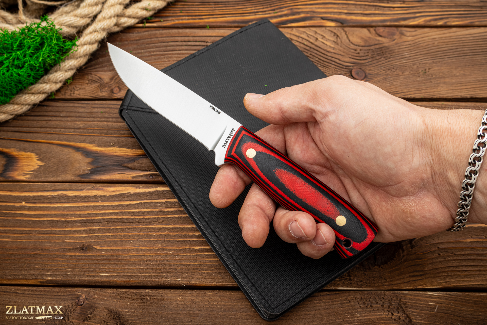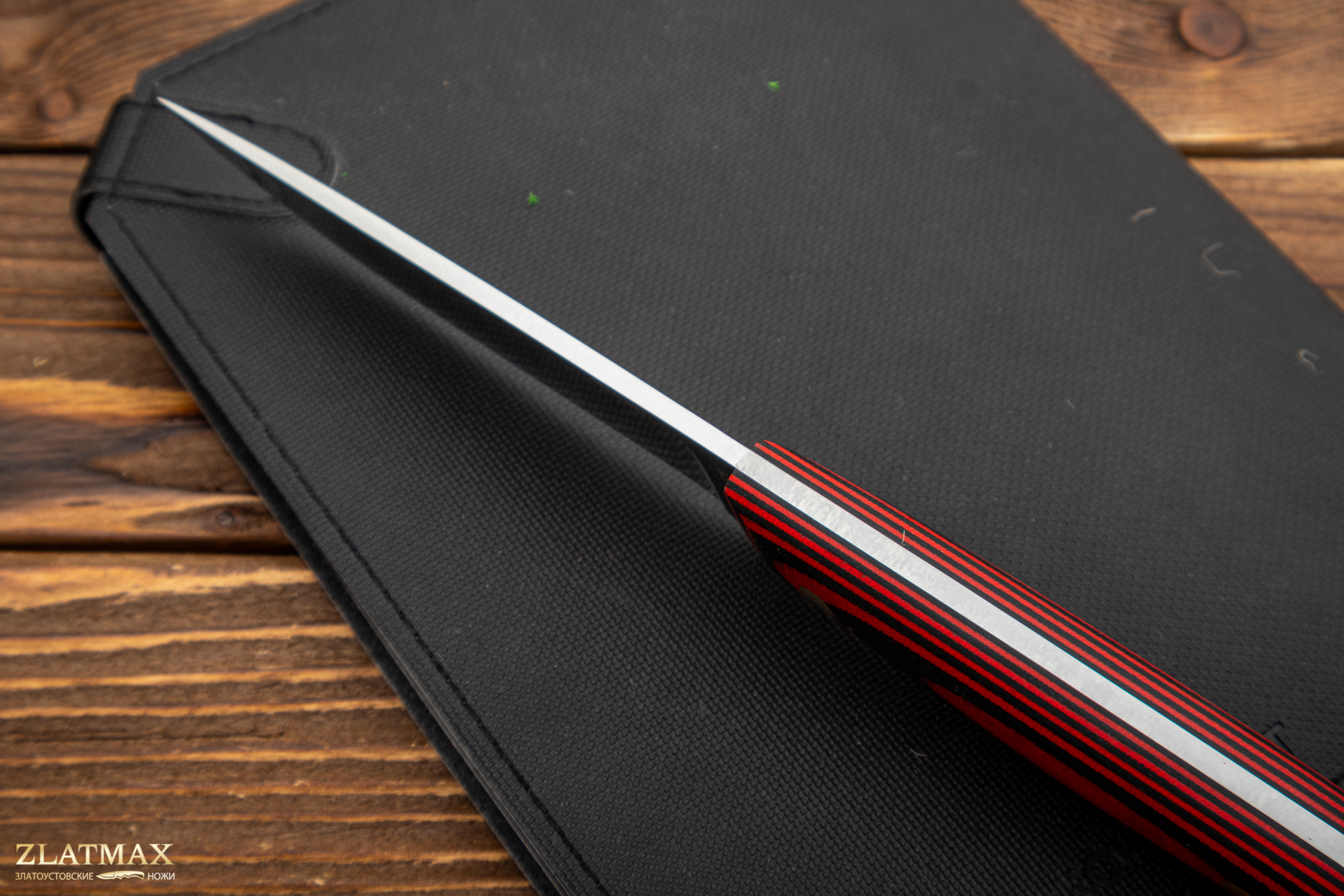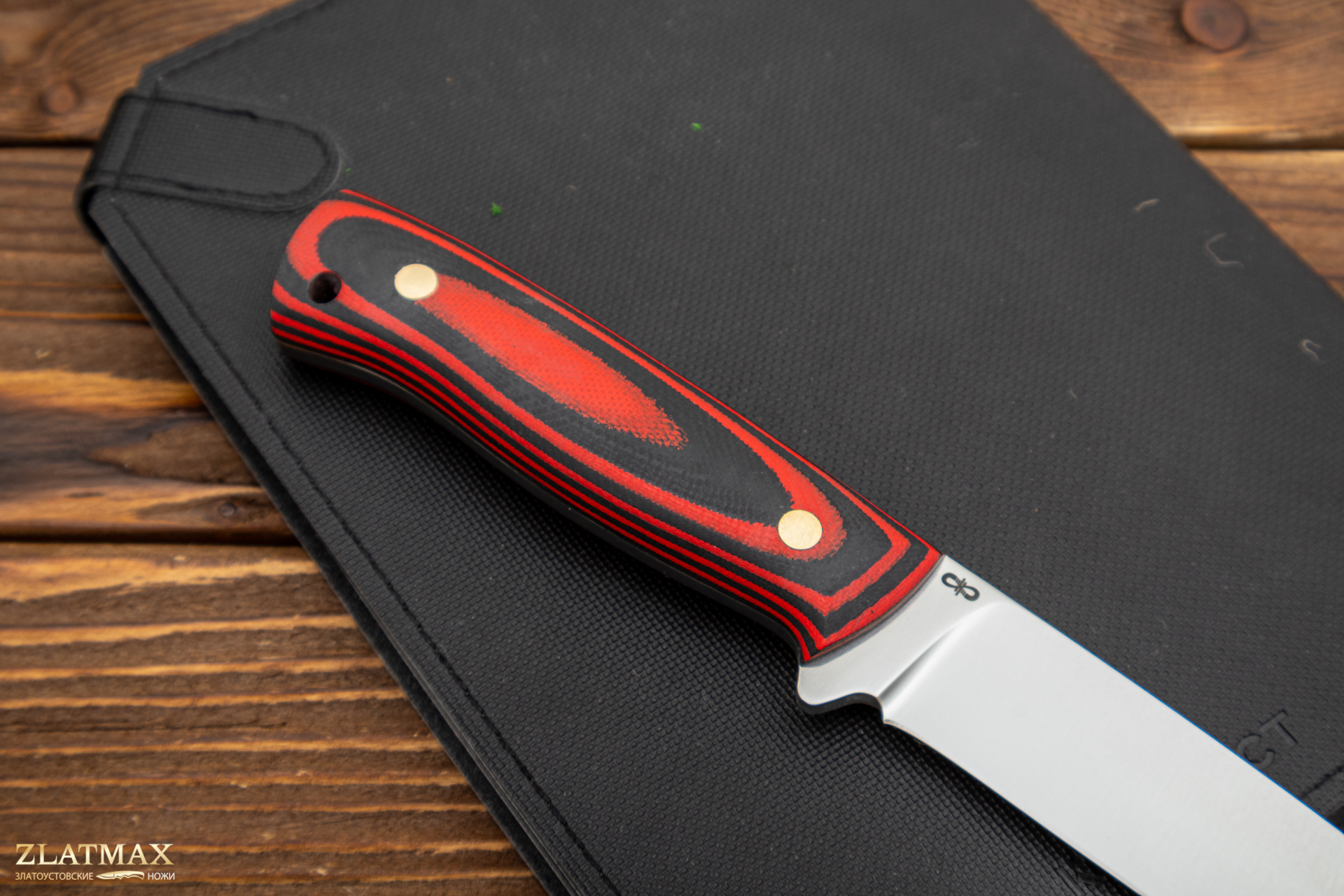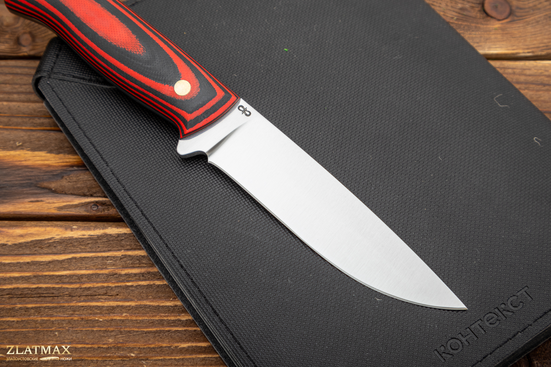Нож с рукоятью из G10 прослужит вам долго, его будет удобно держать в руке, рукоять не будет скользить. Изделие выглядит дорого и представительно.