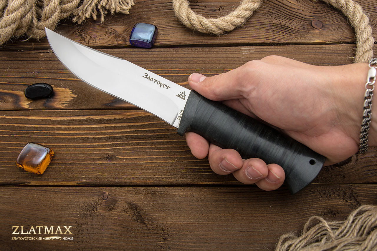 95Х18 - это без преувеличения лучшая сталь российского производства, а потому она пользуется огромной популярностью у отечественных и зарубежных компаний. При правильном изготовлении металл получает отличную твердость, гибкость и прочность. Ножи из этого материала служат, как правило, не один год. И при этом могут выглядеть так, как будто были сделаны только вчера. Но надо только стараться избегать попадания на лезвие соли и долгое воздействие влаги. Единственный минус – клинок из такой стали очень сложно заточить. Придется потратить много сил или даже воспользоваться специальными устройствами. Но зато хорошую заточку ножи держат достаточно долго.