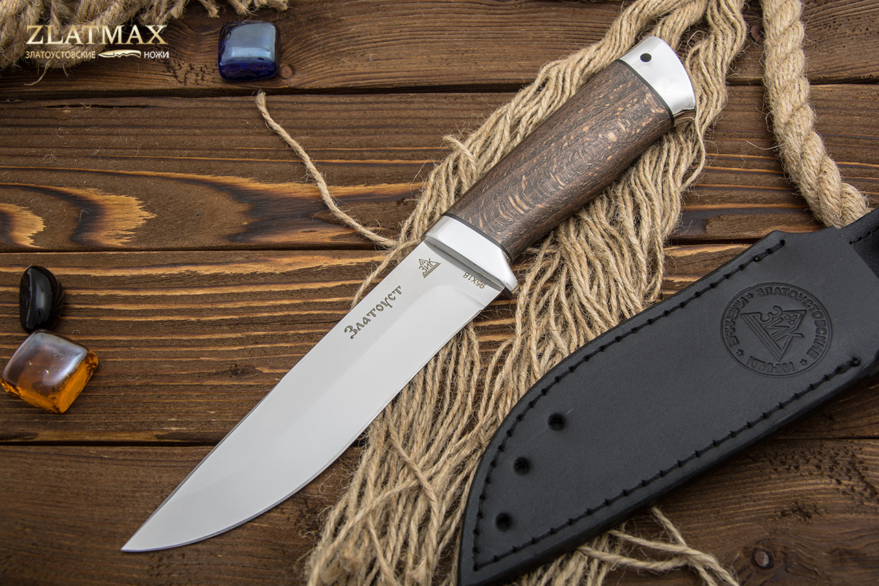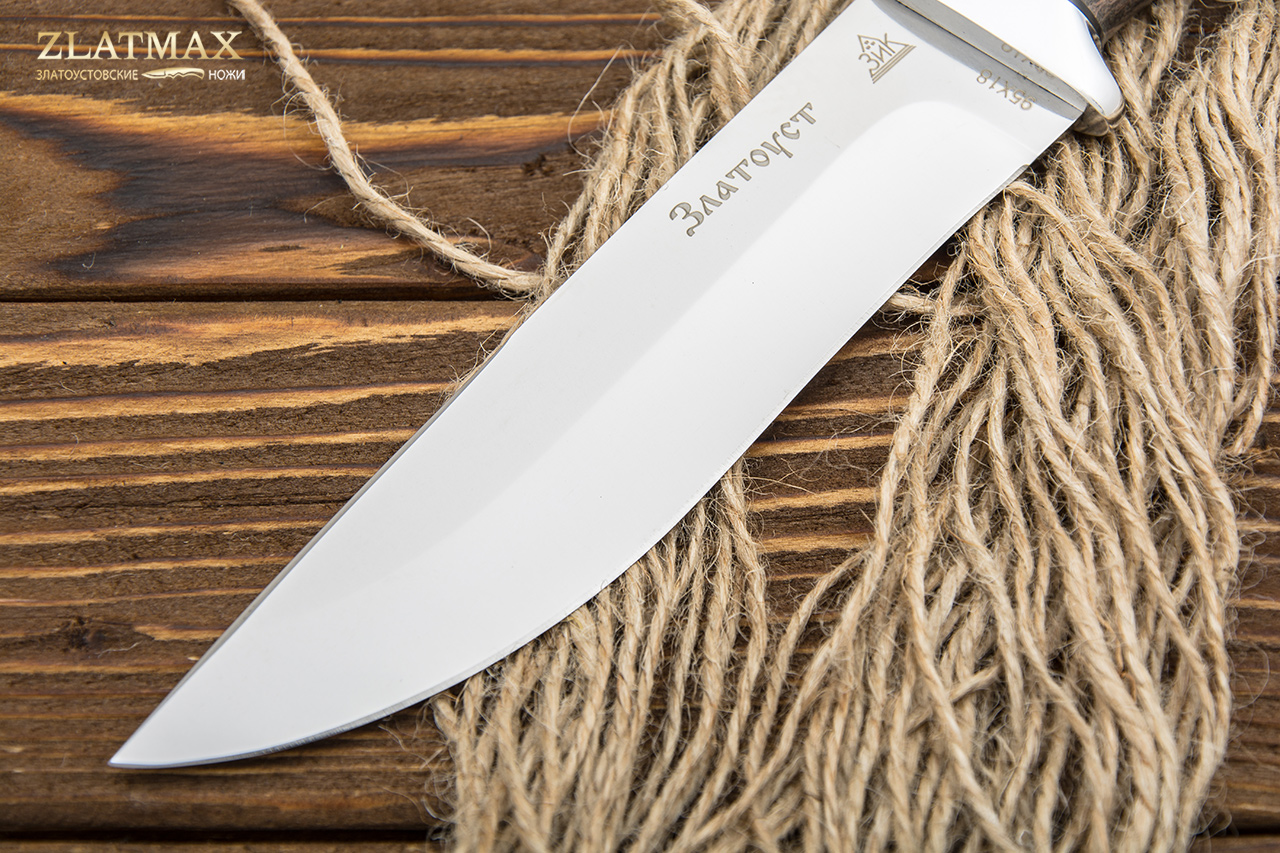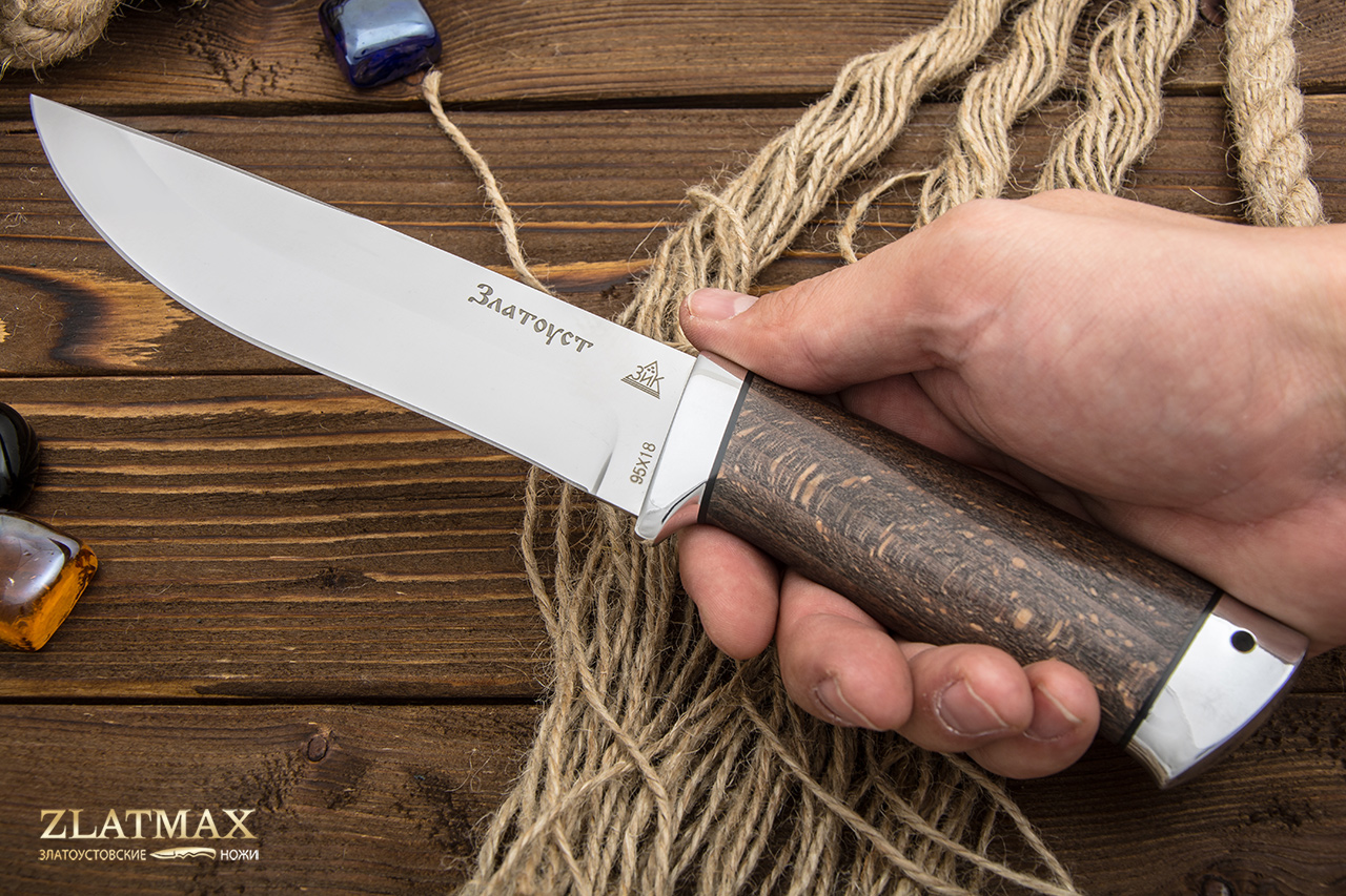 95Х18 - это без преувеличения лучшая сталь российского производства, а потому она пользуется огромной популярностью у отечественных и зарубежных компаний. При правильном изготовлении металл получает отличную твердость, гибкость и прочность. Ножи из этого материала служат, как правило, не один год. И при этом могут выглядеть так, как будто были сделаны только вчера. Но надо только стараться избегать попадания на лезвие соли и долгое воздействие влаги. Единственный минус – клинок из такой стали очень сложно заточить. Придется потратить много сил или даже воспользоваться специальными устройствами. Но зато хорошую заточку ножи держат достаточно долго.