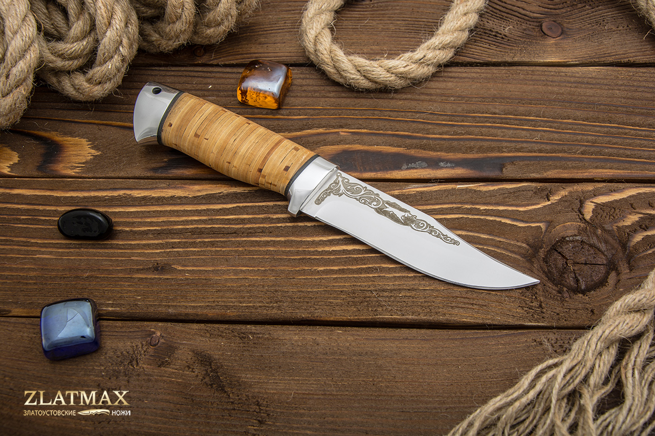 Особенность бересты - она имеет низкую теплопроводность, поэтому пользоваться изделиями из нее комфортно и в теплое, и в холодное время года. Рукоять ножа, выполненная из бересты, не будет скользить в руке, гарантирует надежный хват, даже если она испачкана в чем-то.