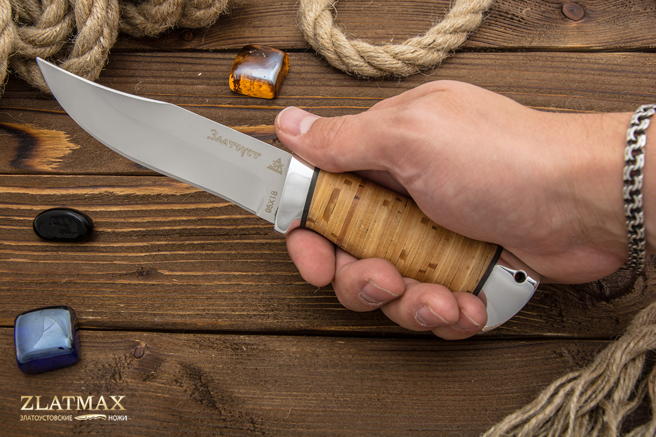 95Х18 - это без преувеличения лучшая сталь российского производства, а потому она пользуется огромной популярностью у отечественных и зарубежных компаний. При правильном изготовлении металл получает отличную твердость, гибкость и прочность. Ножи из этого материала служат, как правило, не один год. И при этом могут выглядеть так, как будто были сделаны только вчера. Но надо только стараться избегать попадания на лезвие соли и долгое воздействие влаги. Единственный минус – клинок из такой стали очень сложно заточить. Придется потратить много сил или даже воспользоваться специальными устройствами. Но зато хорошую заточку ножи держат достаточно долго.