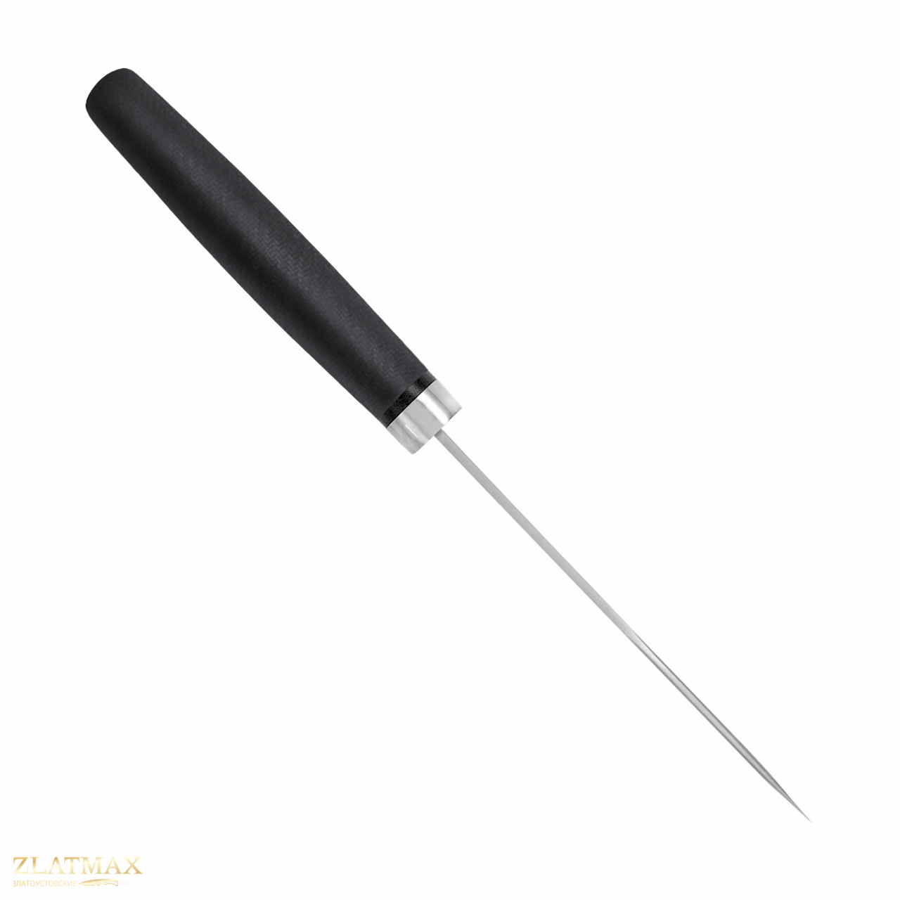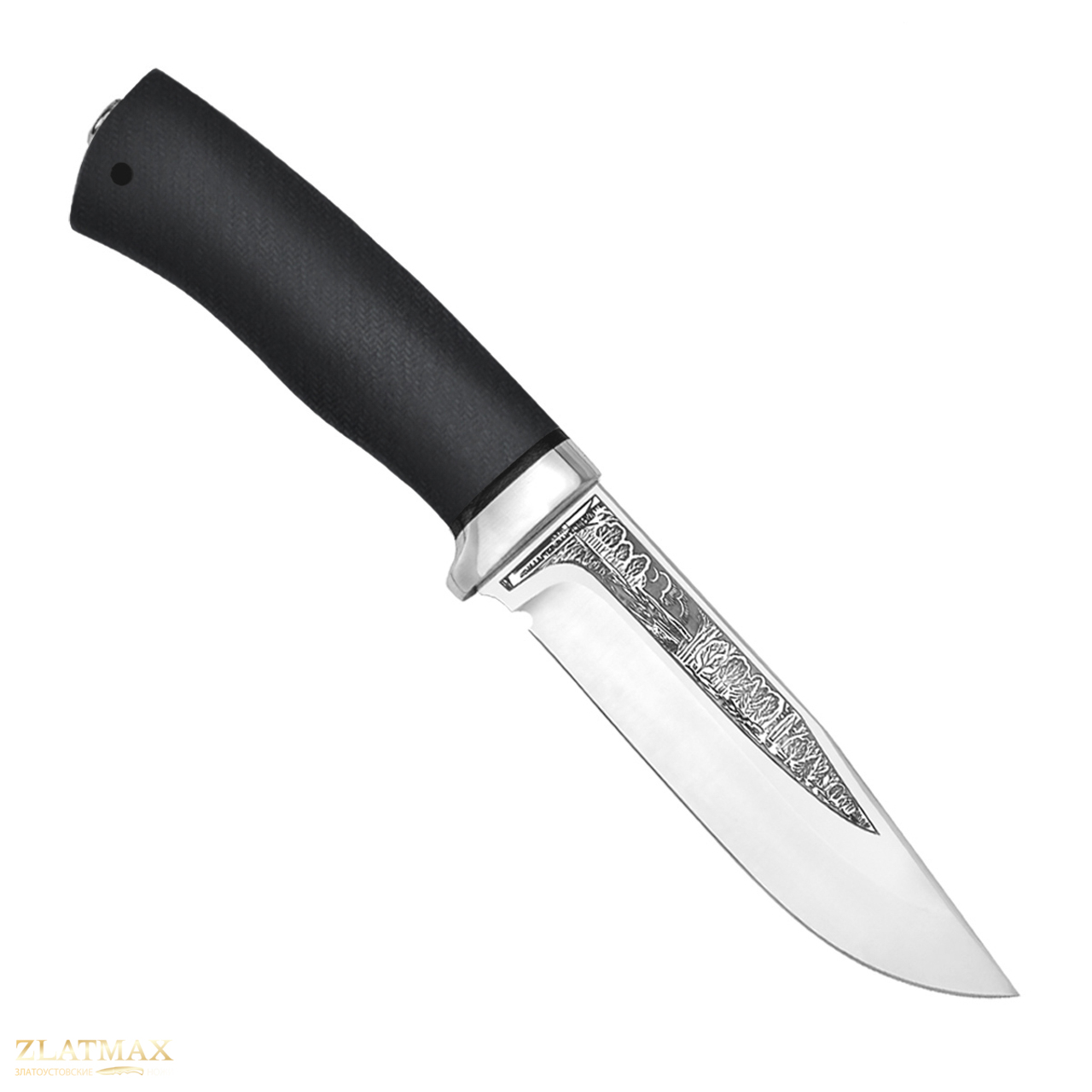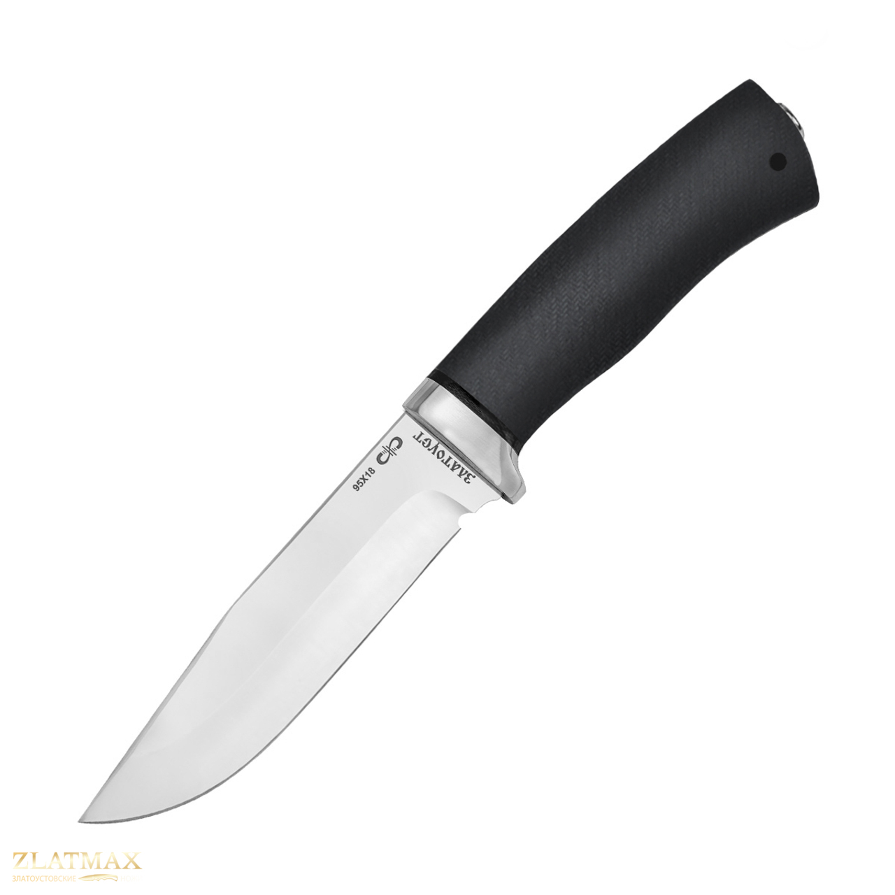 Средний универсальный, легкий и прочный нож с клинком, имеющим популярный обушок с прямым скосом. Пологие вогнутые линзовидные спуски от середины клинка образуют тонкое, прекрасно режущее лезвие. Демонстрирует отличные режущие качества. Толщина обуха в 2,4 мм позволяет оставить широкую голомень, что придает клинку дополнительную прочность. Эргономичная форма рукояти уверенно и прочно ложится в любую ладонь, даже в рукавице. Оптимальной величины гарда не дает соскользнуть пальцам при резах от себя. Монтаж рукояти сквозной, неразборный. На навершии рукояти имеется отверстие под темляк. Отличный выбор для большинства видов работы в лесу.