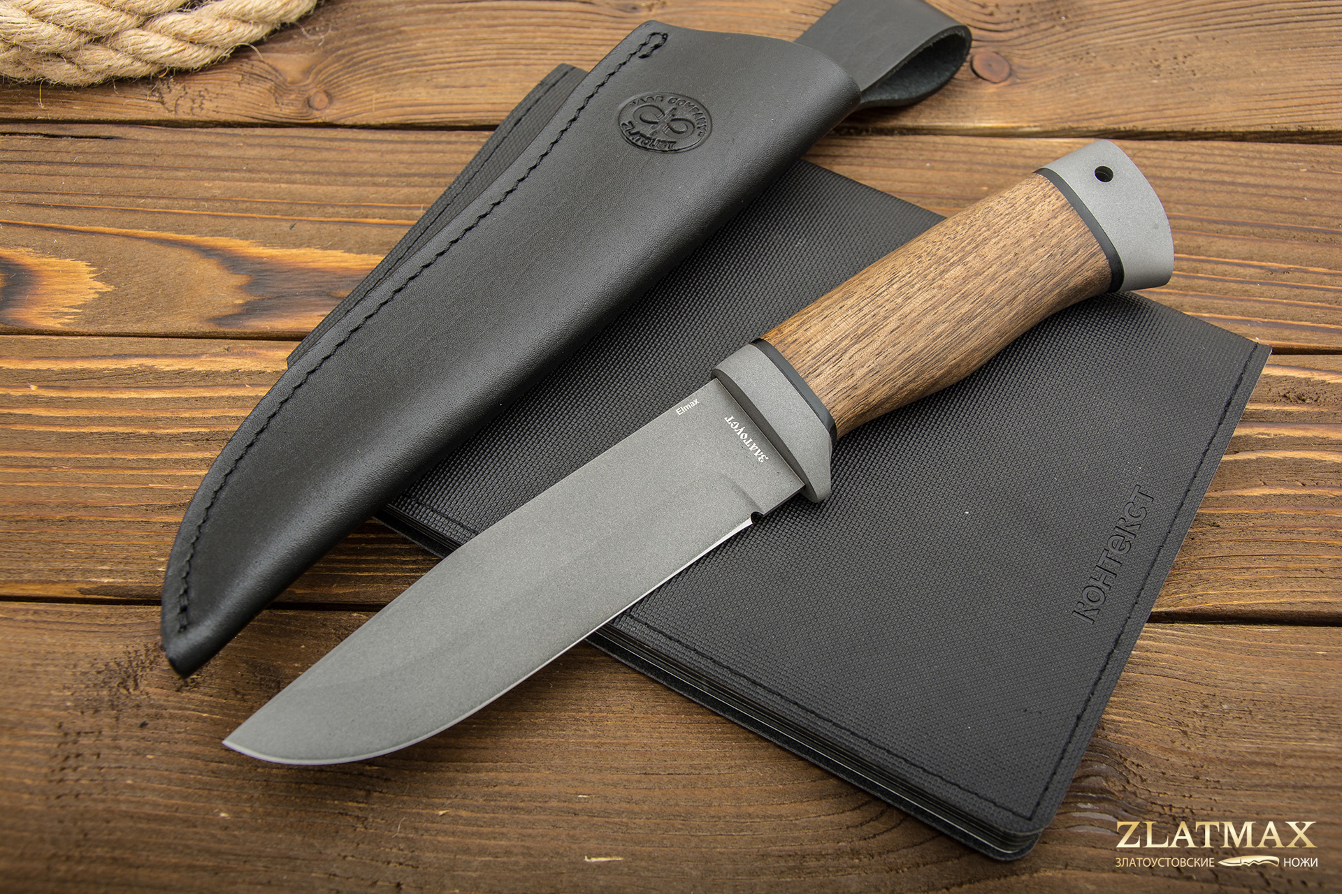 ELMAX - один из признанных лидеров мировой металлургии. Эта сталь была изобретена в Швеции. Она нержавеющая, изготавливающаяся из специального порошка. Обладает большой износоустойчивостью. Благодаря химическому составу, она почти не деформируется, легко переносит воздействие влаги. Специальная термическая обработка позволяет легко затачивать и полировать ножи. Причем поверхность клинка получается практически зеркальной.