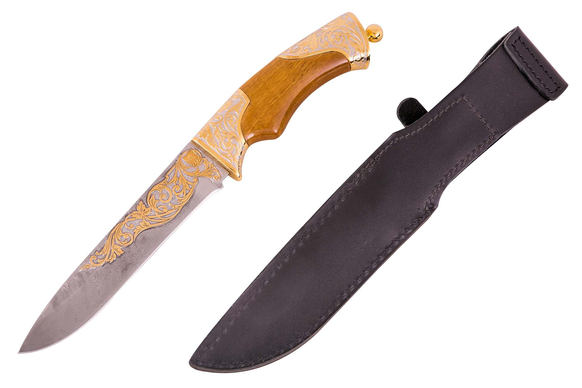 клинок из дамасcкой стали (закалка 58-62 ед. по шкале Роквелла);