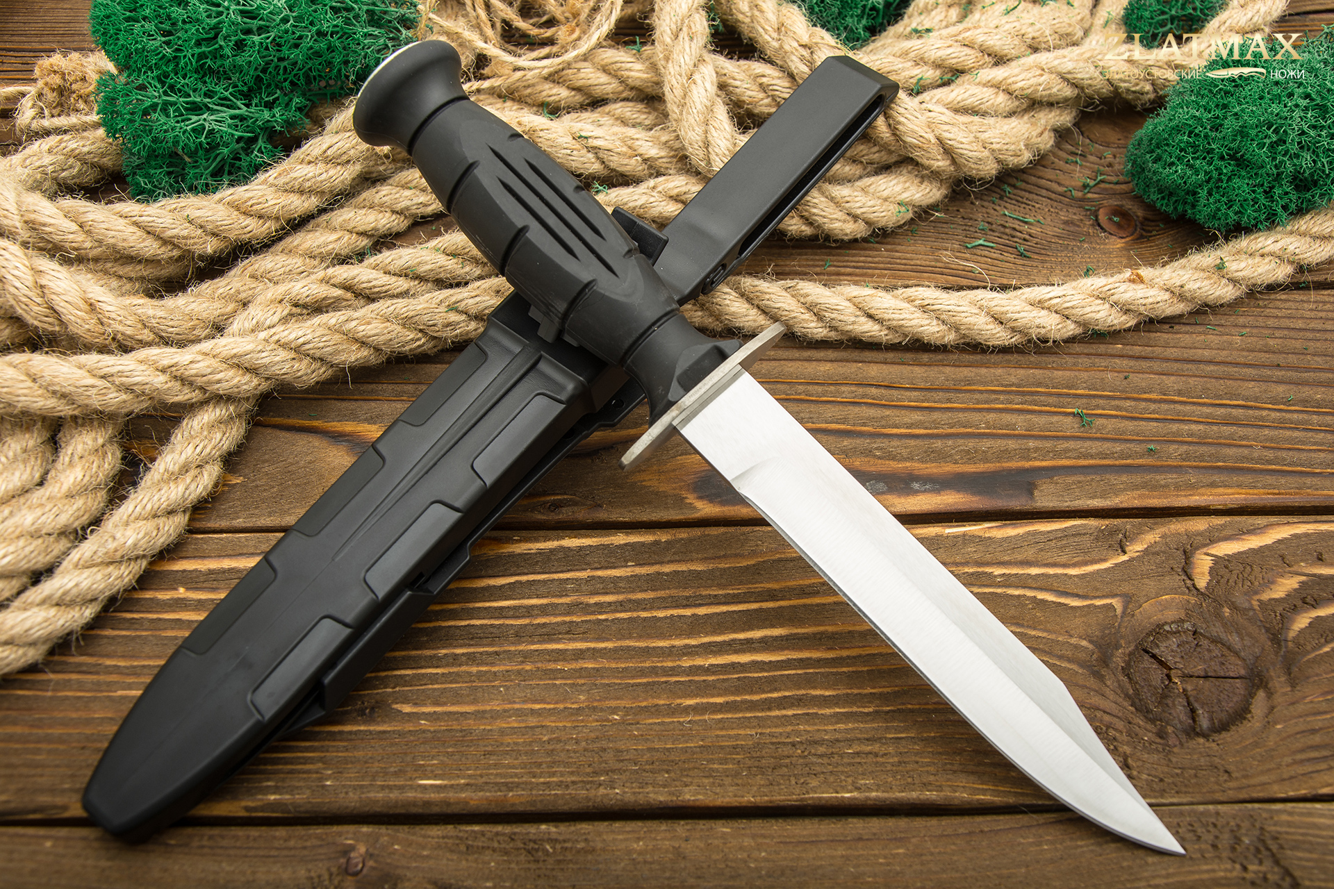 Этот нож имеет богатую историю, он прошел через множество боев и рукопашных схваток. Особенностью ножа является практичная рукоять из эластоллана. В комплекте есть удобные пластиковые ножны крепление Molle.