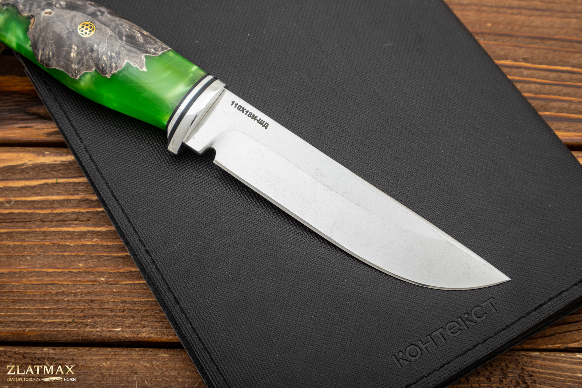 110Х18М-ШД - эта сталь относится к типу подшипниковой. А все потому что чаще всего из подобного материала делают не ножи, а различные кольца, втулки и ролики. Причем используется это все в основном в нефтяной отрасли. И это сразу говорит о высокой прочности стали, ведь в скважине этим деталям приходится противостоять огромным температурам и прочим негативным воздействиям окружающей среды. Что же до клинков, то они получаются превосходными – прочными, острыми, долговечными и так далее. Но минус данной стали заключается в высокой стоимости ее изготовления. А значит, и цена на ножи тоже получается немаленькой.