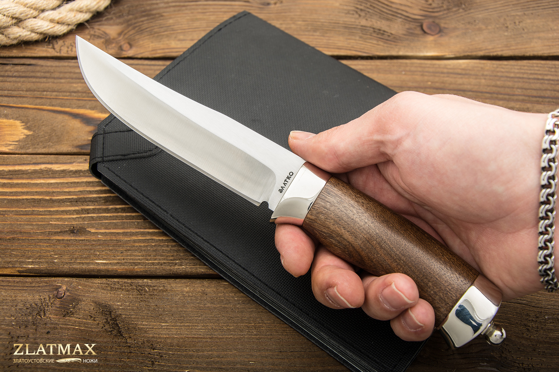 Такая рукоять будет легкой, долго прослужит своему обладателю, не будет скользить в руке. При низких температурах может оставаться холодной. Стоит помнить, что орех не любит большие нагрузки, поэтому таким ножом лучше не стучать по другим предметам и следить за тем, чтобы такой нож не падал с большой высоты.