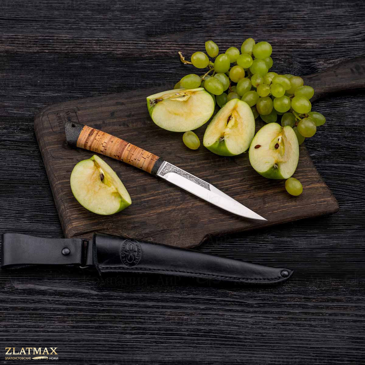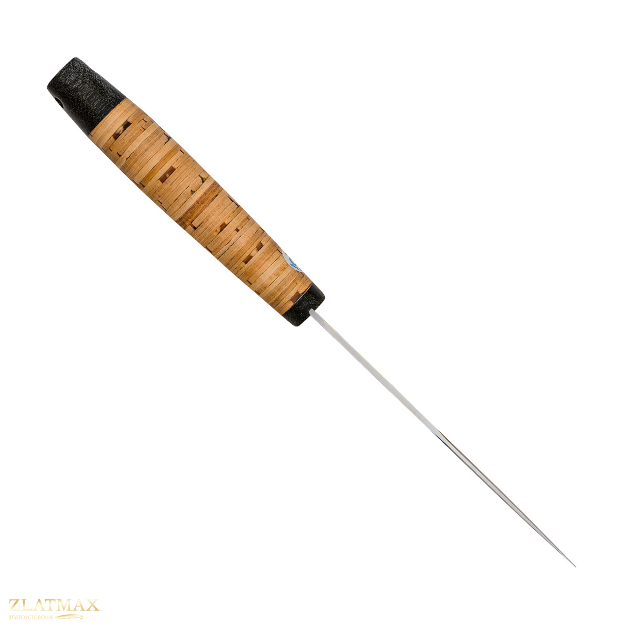 С виду простой, классический нож небольшого размера с продолговатым лезвием. Благодаря своей универсальности и легкости, этот инструмент стал «любимчиком» у тех, кто любит активный отдых. У клинка имеется неширокая пята, выгнутые спуски, а за счет узкого лезвия им довольно просто выпотрошить и разделать тушку, и даже приготовить ужин в лесу. Им удобно пользоваться и держать в руке из-за нужной формы рукояти. Отличную прочность ножу придает сквозной монтаж. Есть так же и отверстие под темляк. Это оружие подходит для разделывания как мелкого зверя и дичи, так и для рыбы.