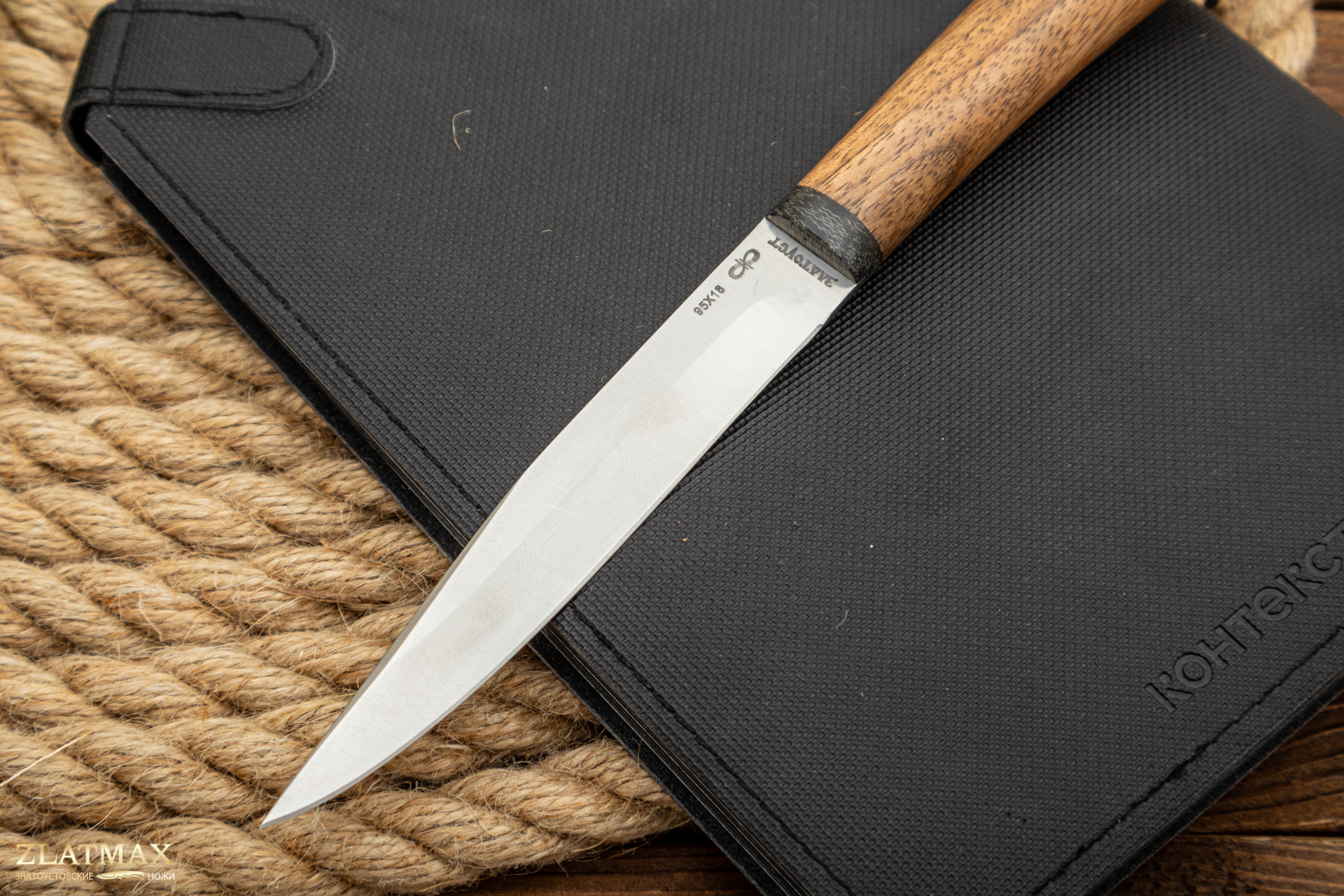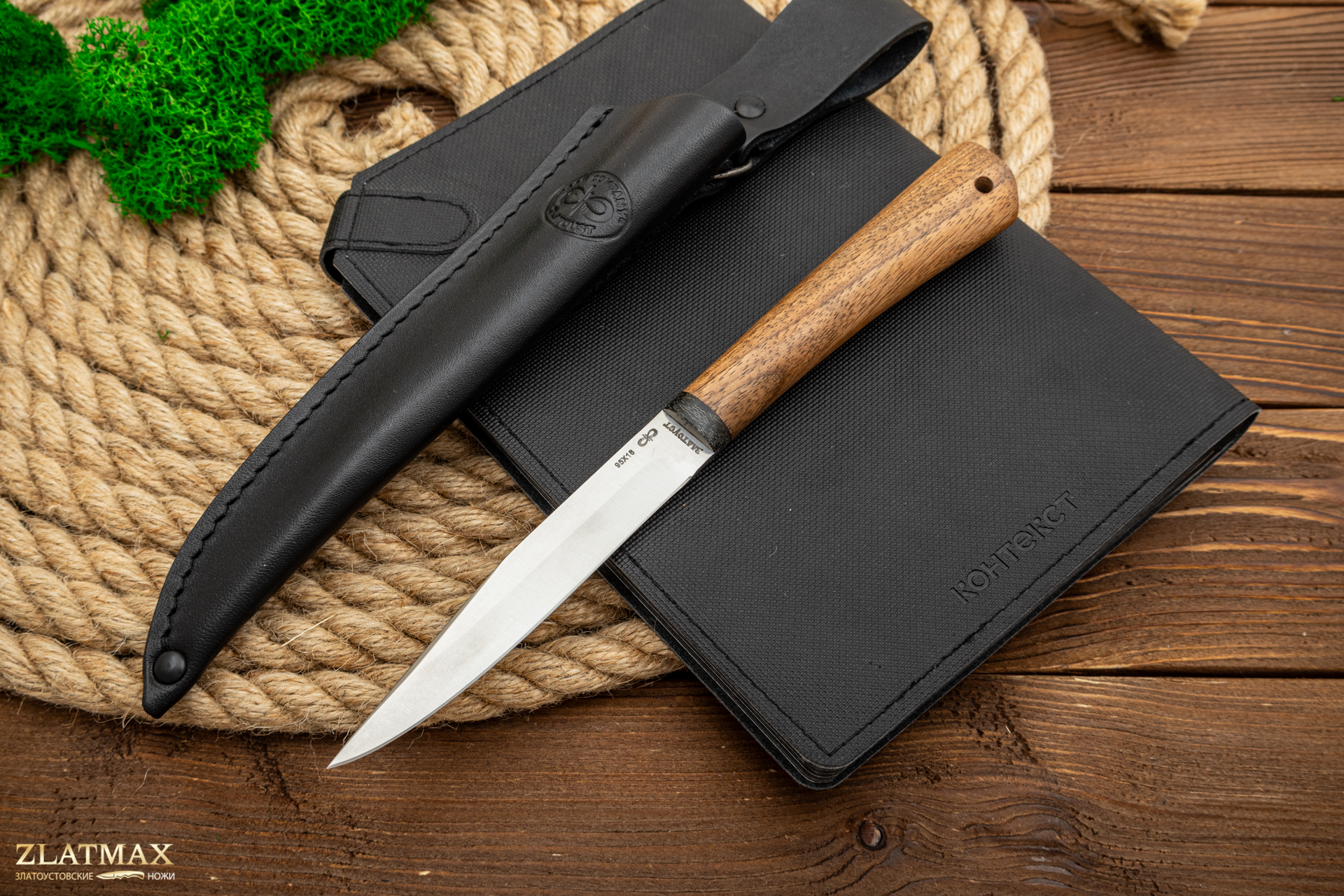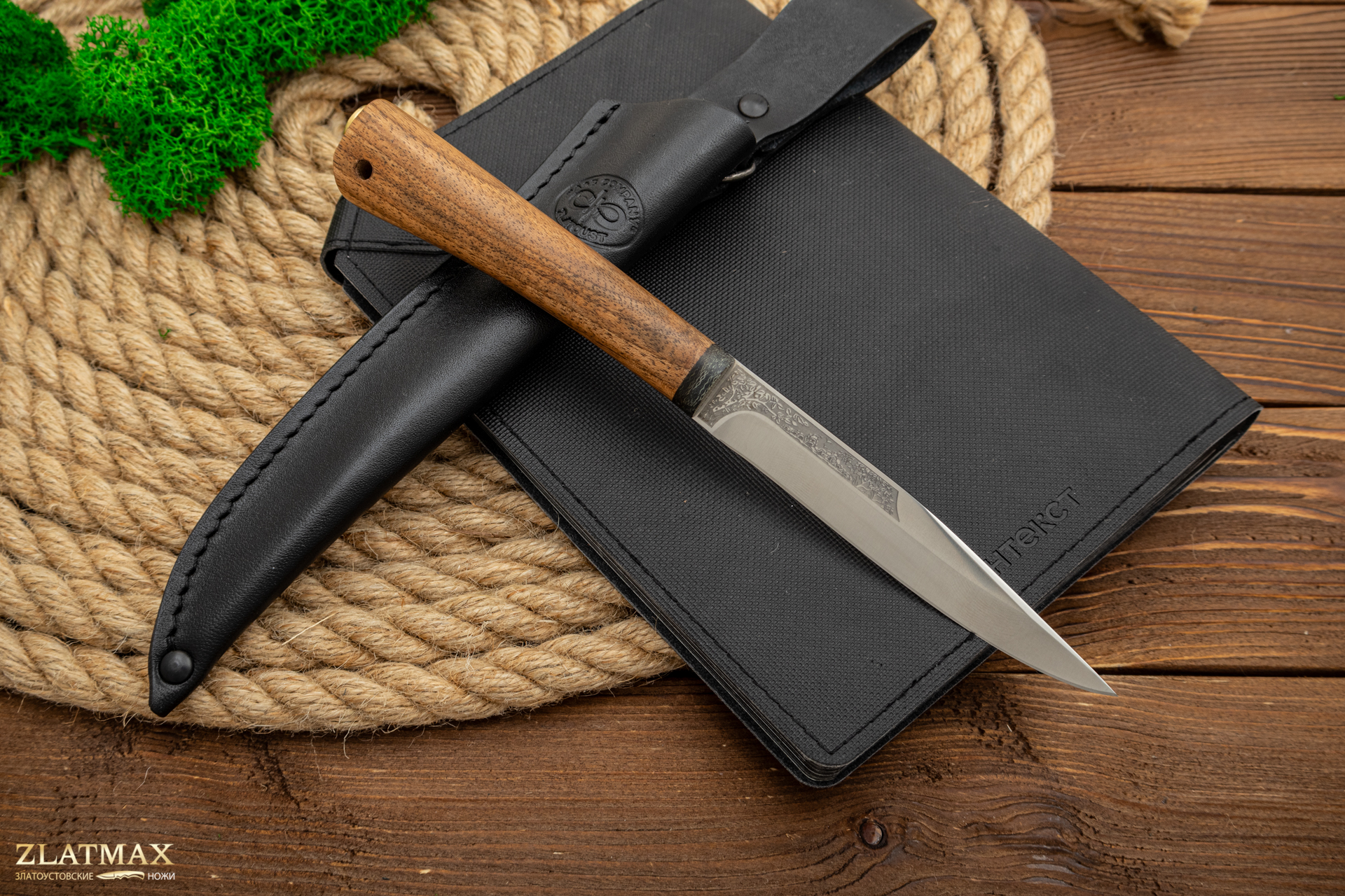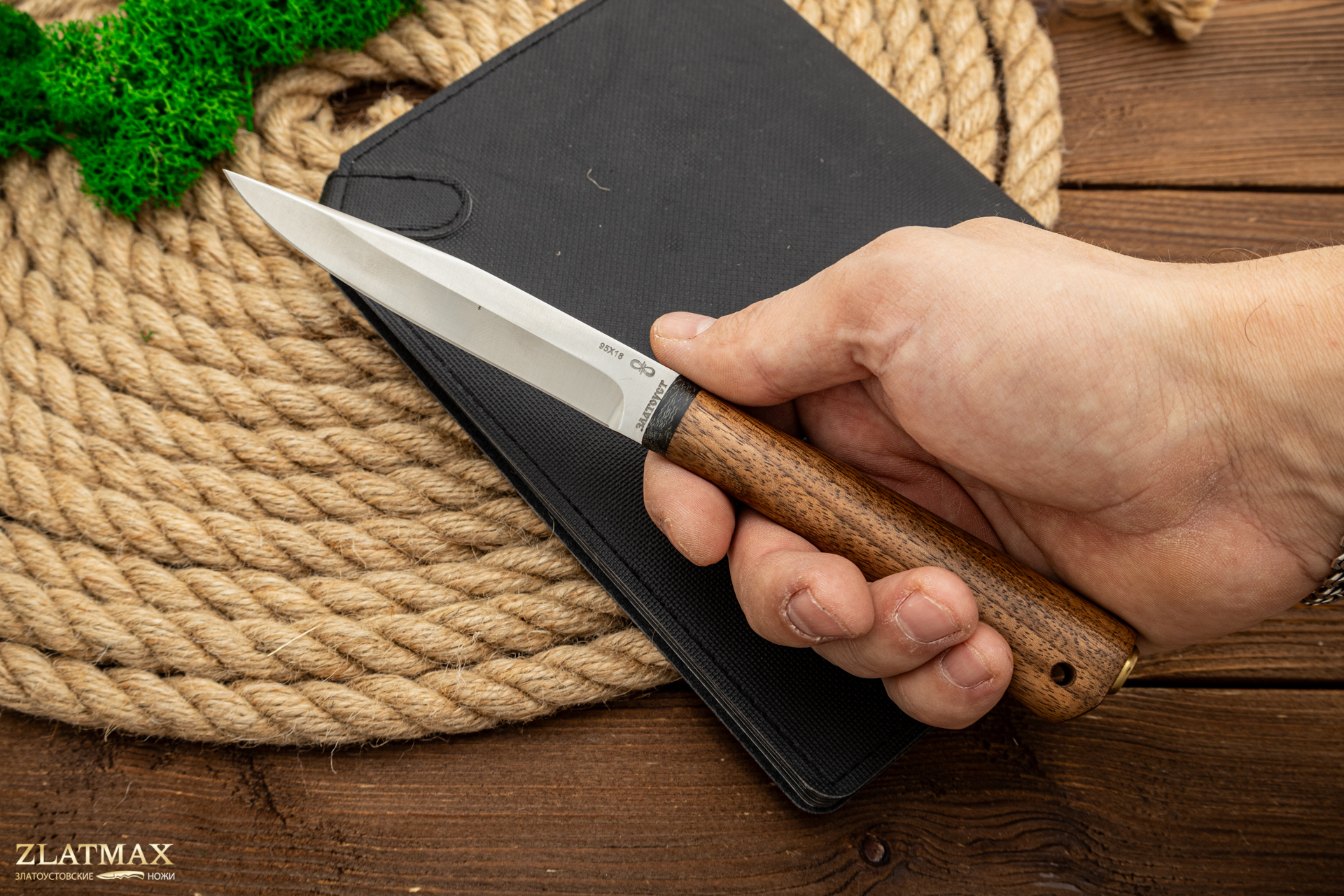 Небольшой универсальный и очень легкий нож с узким клинком классической формы заслуженно пользуется популярностью у приверженцев активного отдыха. Клинок имеет вогнутые линзовидные спуски от половины ширины клинка. При толщине обуха в 2 мм клинок имеет неширокую пяту. Ножом легко не только освежевать трофей, ошкурить, выпотрошить, разделать тушку, но и приготовить в лагере праздничный ужин. Удобная форма рукояти позволяет уверенно работать с мелкими трофеями, а сквозной (неразборный) монтаж придает ножу хорошую прочность. На навершии рукояти имеется отверстие под темляк. Прекрасный нож для разделки мелкого пушного зверя, боровой и водоплавающей дичи, а также рыбы.