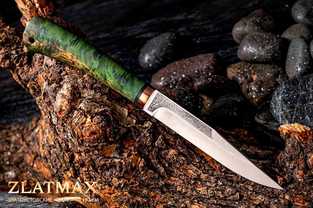 С виду простой, классический нож небольшого размера с продолговатым лезвием. Благодаря своей универсальности и легкости, этот инструмент стал «любимчиком» у тех, кто любит активный отдых. У клинка имеется неширокая пята, выгнутые спуски, а за счет узкого лезвия им довольно просто выпотрошить и разделать тушку, и даже приготовить ужин в лесу. Им удобно пользоваться и держать в руке из-за нужной формы рукояти. Отличную прочность ножу придает сквозной монтаж. Есть так же и отверстие под темляк. Это оружие подходит для разделывания как мелкого зверя и дичи, так и для рыбы.