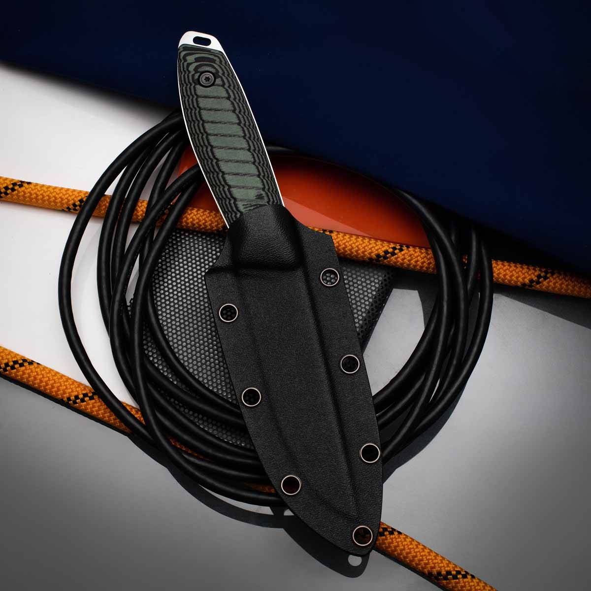 Ножи из линейки «ТЕХНО» (Жулан-Т, Леший-Т, Стриж-Т, Ронин-Т) стандартно комплектуются практичными кайдексовыми ножнами. При желании, заказчики могут заменить кайдексовые ножны на ножны из хольстекс карбона (с доплатой) и дополнительно заказать крепление Tek-Lok для ножен.