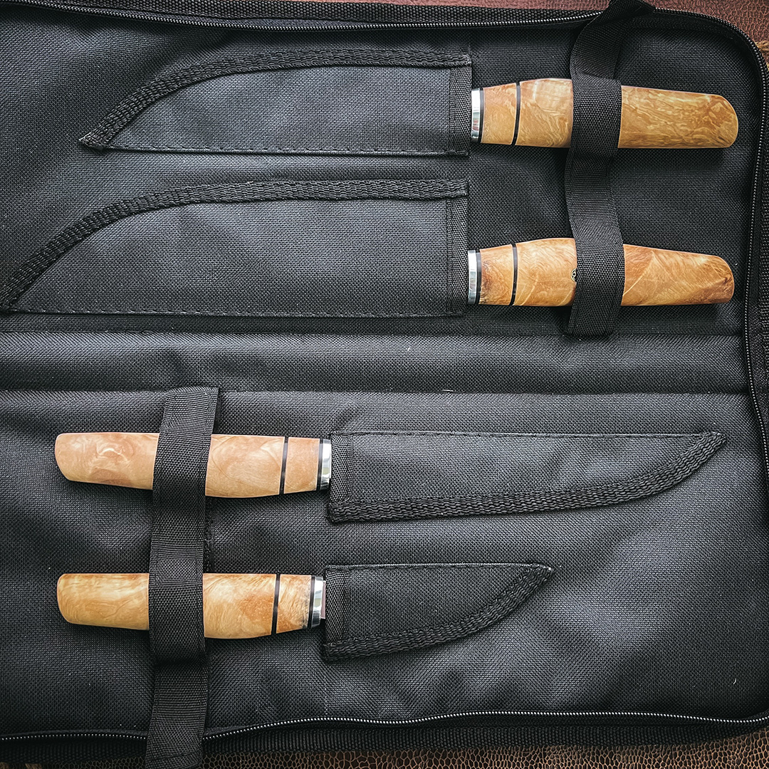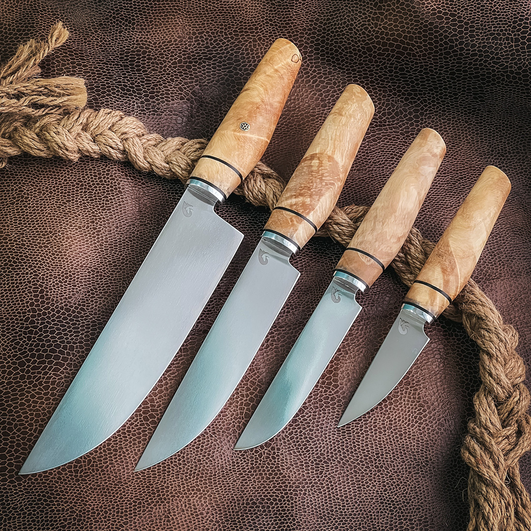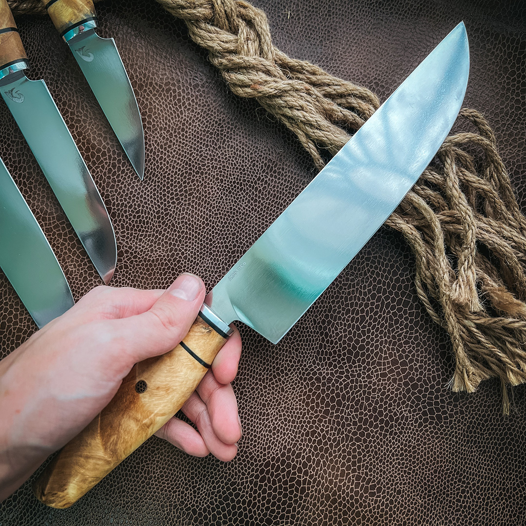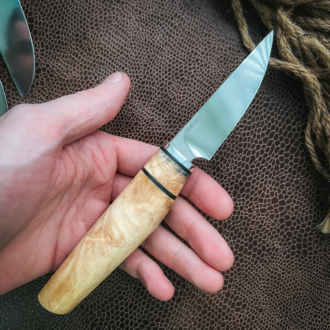 Рукояти выполнены из стабилизированной карельской березы экстра