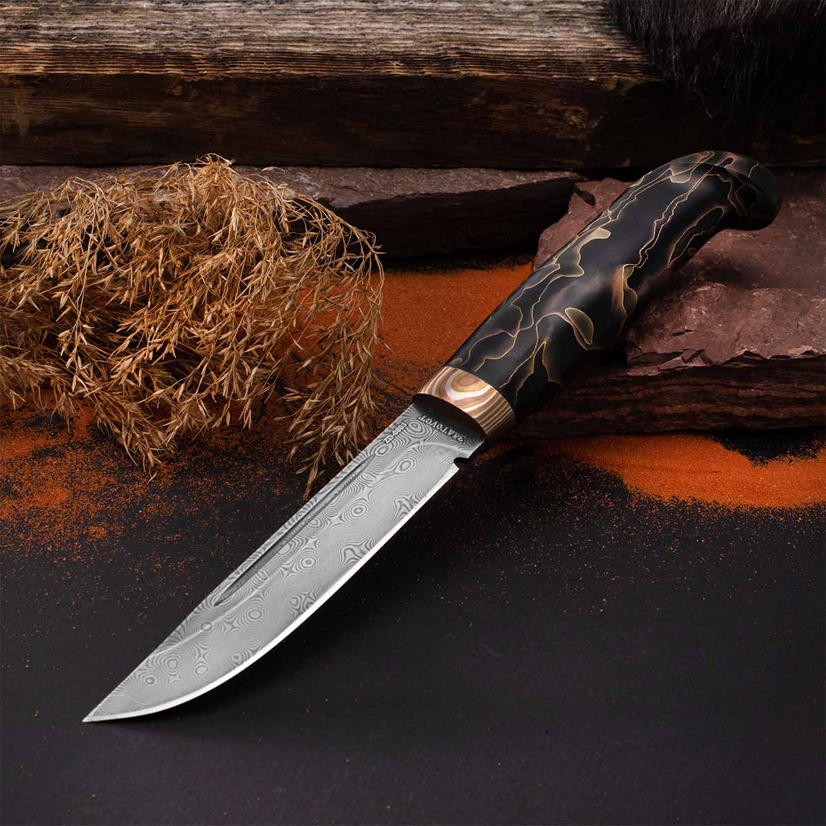 Является разновидностью дамасской стали, которая изготавливается в России. Один из самых доступных и распространенных среди дамасков. Обладает хорошей прочностью и, при том, имеет стойкость к влажной среде и другим негативным факторам. Нож из дамаска ZD-0803 отлично затачивается и не притупляется длительное время, что не может не радовать любителей оружия. Эти ножи в основном используются в коллекционировании, но при этом отлично подойдут для бытового использования, например туризма и походов.