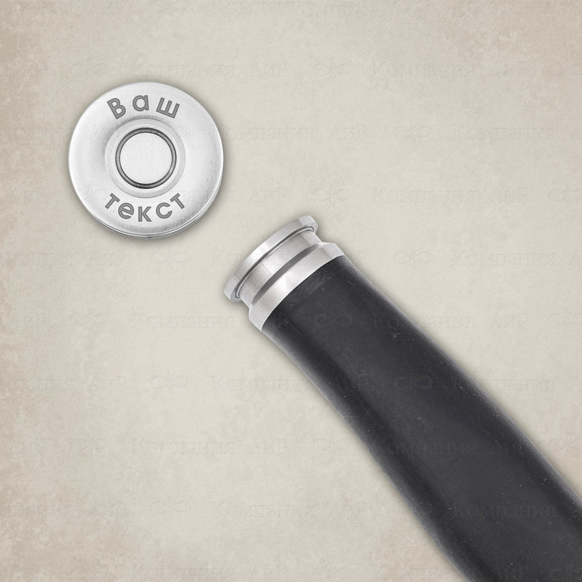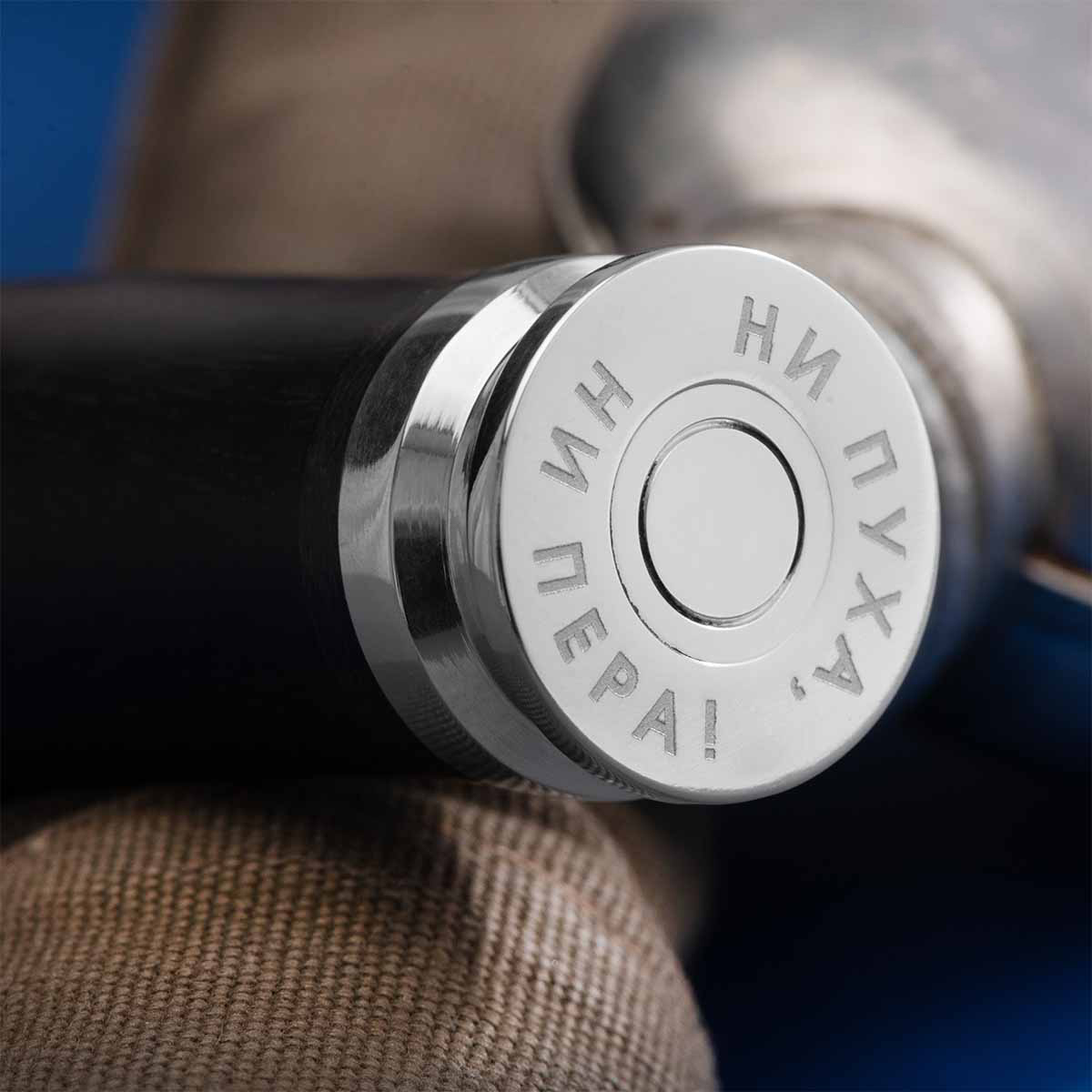У ножей «НР Патрон» тыльник выполнен в виде донышка гильзы, у ножей «НР Прицел» – скругленный тыльник, придающий рукояти дополнительную эргономичность. Для корпоративных и персональных заказов предусмотрена возможность гравировки логотипа предприятия, эмблемы спецподразделения или инициалов прямо на тыльнике. Кроме того, памятную надпись или элементы фирменного стиля можно нанести на клинок.