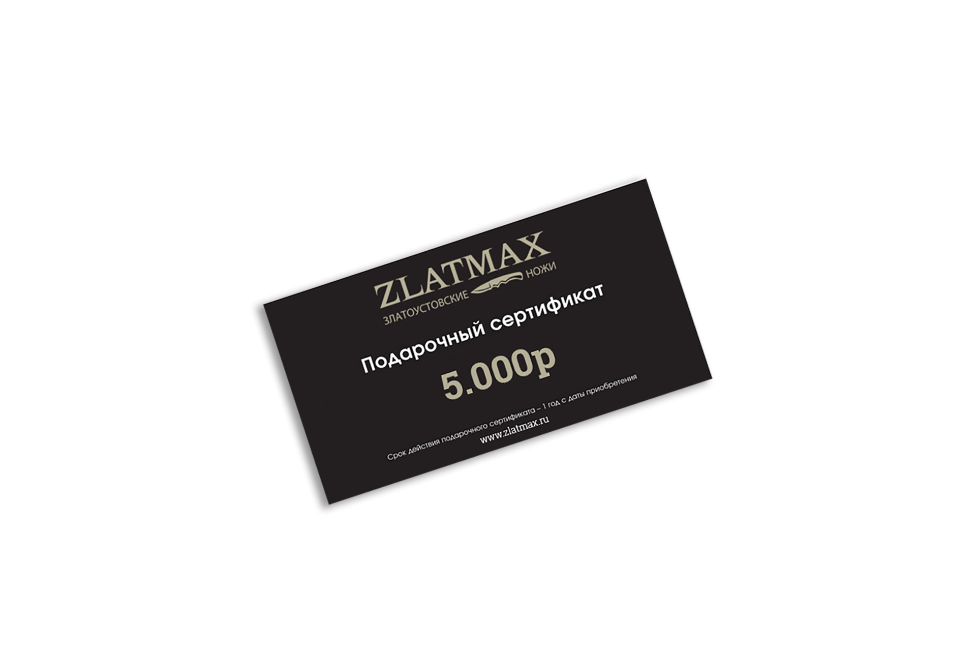Подарочный сертификат от магазина ZLATMAX Златоустовские ножи может стать замечательным подарком любому ценителю красивых и качественных ножей и предметов интерьера. Вы можете выбрать для подарка сертификат с фиксированным номиналом и без фиксированного номинала, пополнив его на любую сумму от 1 000 до 100 000 рублей.