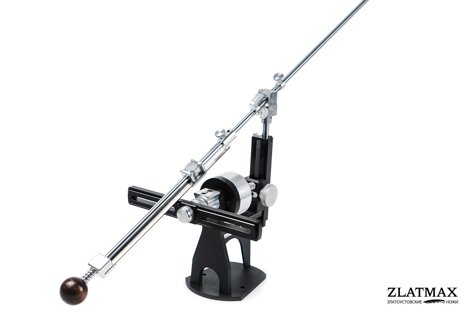 Подвижная часть соединена с основанием ласточкиным хвостом, что гарантирует абсолютную точность выставления угла. А дополнительный винт фиксации позволяет жестко заблокировать подъемник во время проведения обдирочных работ. Для увеличения угла заточка используется дополнительный подъемный шток. Теперь фиксировать его положение стало удобнее: фиксирующий винт может быть установлен на обе стороны от корпуса. Ответная часть подъемника изготовлена из прочного полимерного материала — полиацеталя. Он является сверхпрочным полимером с высокими эксплуатационными характеристиками и плотностью 1,420 г/см3. Полиацеталь обладает превосходными антифрикционными свойствами, обеспечивая отличную плавность хода реечного подъемника. Полимер черного цвета, с высокой износостойкостью и устойчивостью к истиранию. Он длительное время сохраняет первозданный внешний вид и гладкую блестящую поверхность. Крепление ползуна происходит через соединение типа ласточкин хвост, что исключает люфты механизма при работе, которые могли бы сказаться на качестве заточки. За работу подъемного механизма отвечает стальная рейка. Шкала измерения углов нанесена на лицевую сторону ползуна и дает возможность визуально контролировать их установку.
