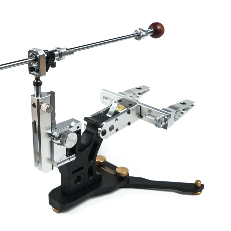 Подъемник дает возможность максимально плавно выставить угол и надёжно зафиксировать положение шарнирного узла на заданной высоте. Его установка на заточное устройство не просто добавляет функциональные возможности, но и расширяет диапазон доступных углов заточки (12°-33°).