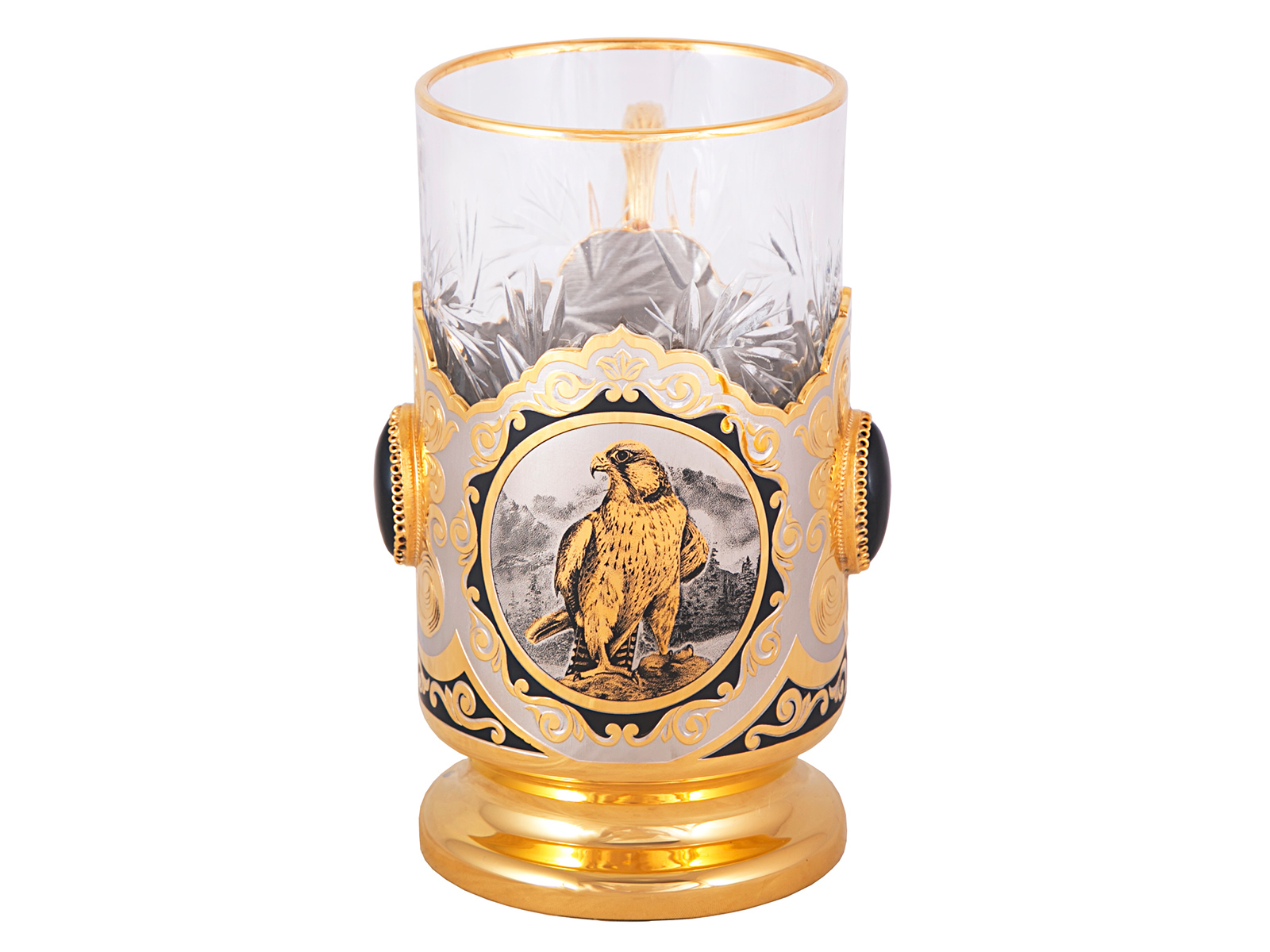 Использование подстаканников – добрая традиция, к которой не стыдно вернуться и в современности. «Соколиный глаз» - это не просто посуда. Это настоящее художественное произведение, каждая линия которого выводилась мастером вручную. Поэтому совсем не удивительно, что все получается настолько реалистично. И, по желанию заказчика, дизайн может быть кардинально видоизменен. Латунь, хрусталь и агат… Эти, казалось бы, несовместимые материалы образуют единую концепцию – лаконичную и органичную. Подобное приобретение – это настоящий подарок себе или близким.
