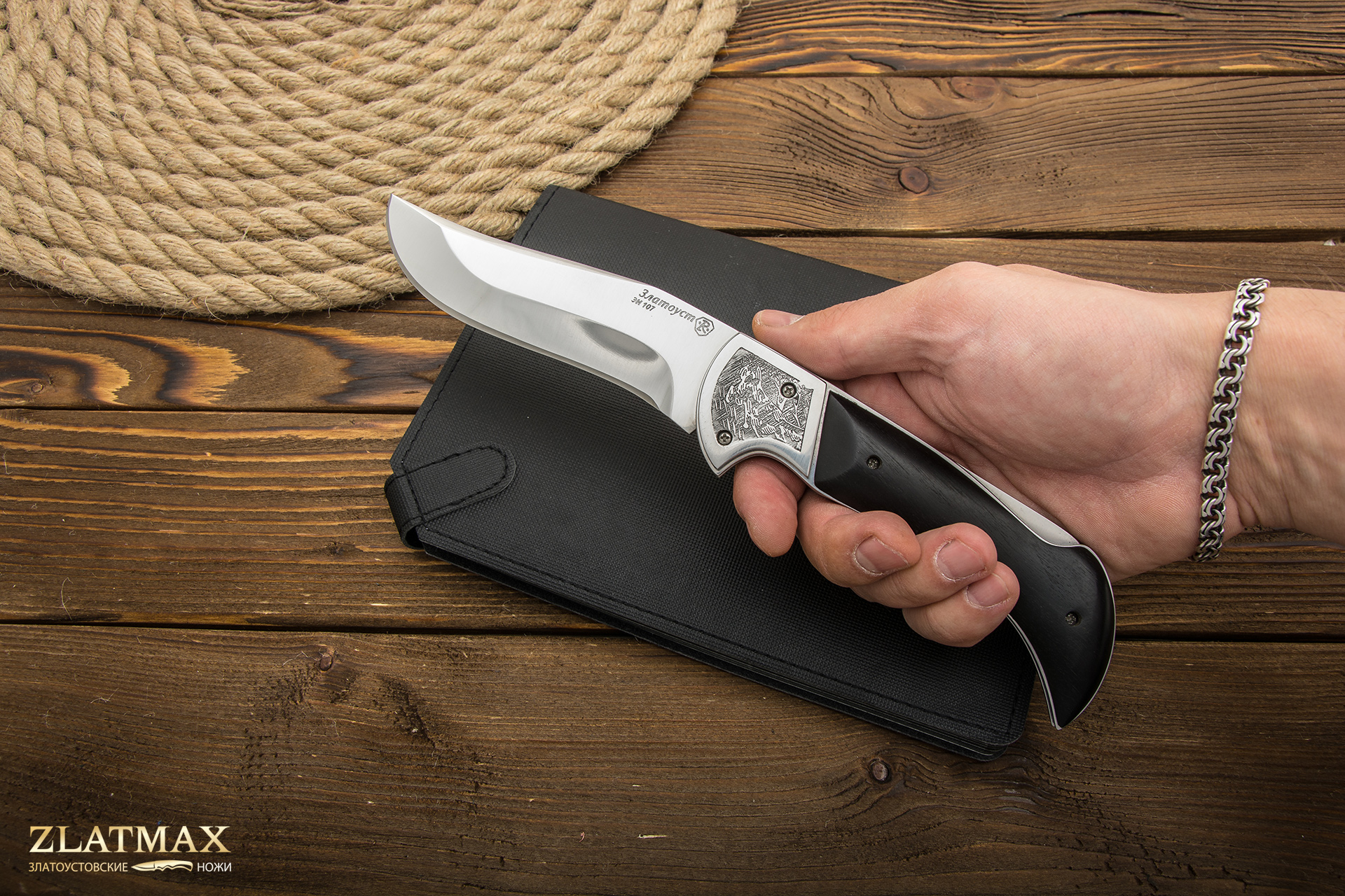 Складной нож «Клык» изготовлен фирмой-производителем «Златпрофит». «Златпрофит» - это одна из немногих фирм, которые производят широкий модельный ряд складных ножей. Складные ножи «Златпрофит» - это самое высокое качество и надежность. Нож «Клык» самый большой из модельного ряда складных ножей, имеет внушительный вид и размеры. Если Вы хотите качественный и надежный нож, то складной нож «Клык» - это именно то, что Вам необходимо. На сегодняшний день фирма «Златпрофит» является лидером по производству складных ножей среди других златоустовских предприятий и заслуженно любима среди покупателей. Каждый изготовленный нож проходит двойной ОТК. Сначала его проверяют непосредственно на производстве в фирме-производителе, сразу после заточки и шлифовки, а затем проверяют специалисты нашего интернет-магазина «Zlatmax». Ваш нож будет точно соответствовать заявленным техническим характеристикам. Складной нож «Клык» подойдет Вам, если Вы не любите клинки классической прямой формы и Вам нужен надежный качественный спутник в походах, на охоте и рыбалке. Ручной механизм складывания очень надежен и никогда не даст сбоя. Накладки из натуральных материалов так же продлевают срок службы складного ножа и наделяют нож благородным внешним видом. Такой нож не стыдно будет показать среди знакомых и друзей. Складной нож «Клык» – марка стали ЭИ-107 (40Х10С2М). Рукоять – накладки из ореха. Марка стали ЭИ-107 - нержавеющая высокоуглеродистая. Теплая рукоять из ореха легко моется и не впитывает влагу. Заточка клинка – заводская. После работы с ножом необходимо его промыть и вытереть насухо. В комплекте кожаные ножны с застежкой «кнопка». Покупая складной нож «Клык» в нашем интернет-магазине, Вы получаете дополнительную гарантию в 1 месяц, в течение которого мы вернем Вам деньги, если по какой-то причине Вам не подошел нож.Складной нож Клык – марка стали ЭИ-107 (40Х10С2М).