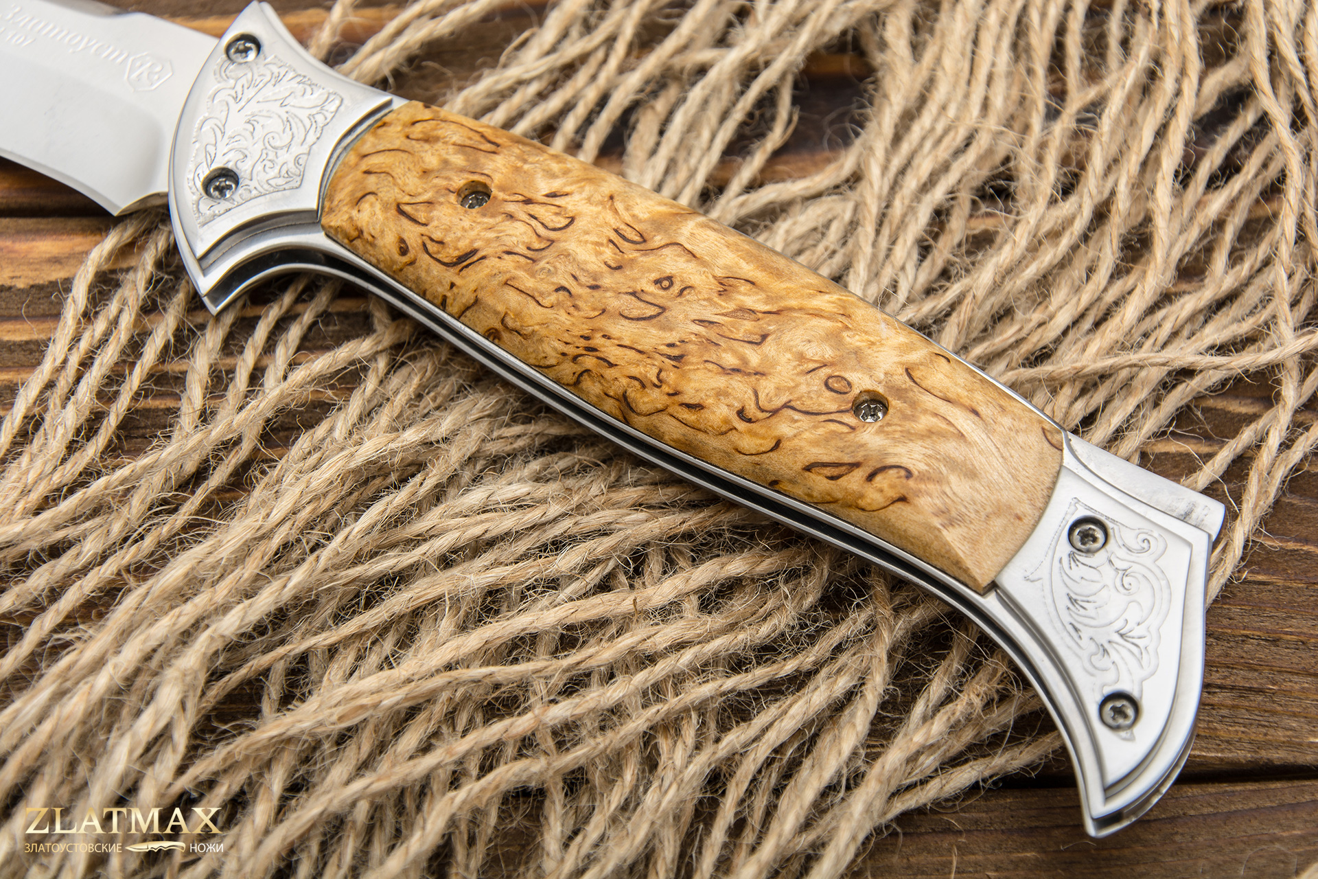 Узор и фактура каждого изделия уникальны, они не повторяются. Карельская береза позволяет создавать уникальные рукояти, которые притягивают взгляд и становятся любимым экземпляром в коллекции.