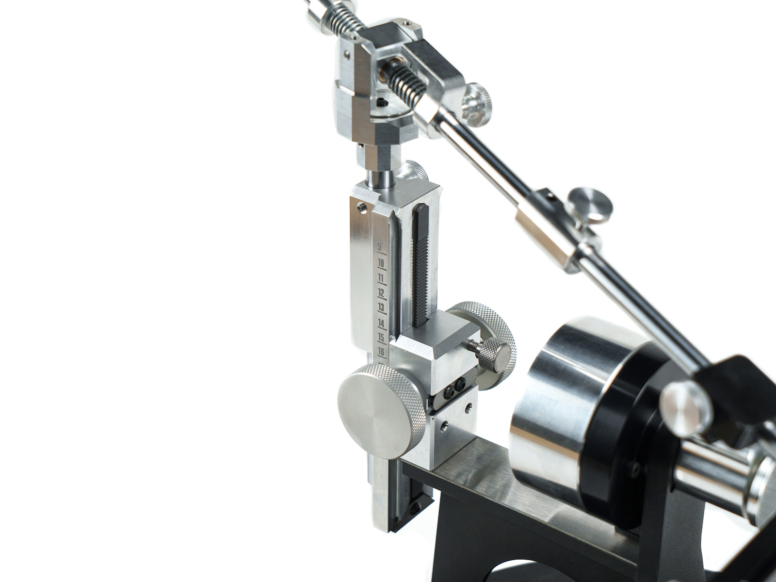 Ответная часть подъемника изготовлена из прочного авиационного алюминия. Он обеспечивает отличную плавность хода, благодаря усовершенствованной форме зубьев стальной рейки. Крепление ползуна происходит через соединение типа ласточкин хвост, что исключает люфты механизма при работе, которые могли бы сказаться на качестве заточки. Шкала измерения углов нанесена на боковую поверхность ползуна и дает возможность визуально контролировать их установку. Для обеспечения работы механизма реечного подъемника применяется высококлассная тефлоновая смазка. Она образует скользкую, устойчивую к коррозии прозрачную пленку, гарантирующую плавность хода, а также защиту от воды, масла, грязи и пыли.