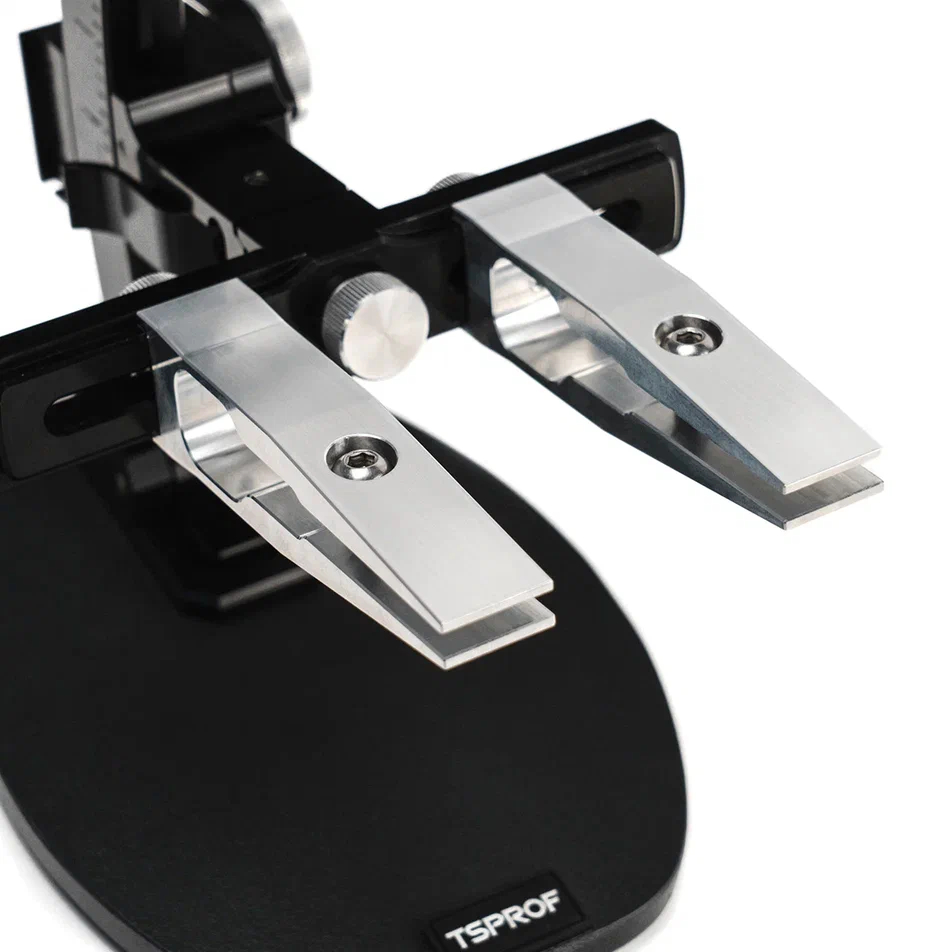 В комплекте идут два зажима шириной 20 мм, благодаря двум точкам фиксации, нож зажимается максимально надежно. Подходят для большинства типов ножей, в том числе для заточки ножей со спусками от обуха. Для фиксации ножей со спусками от обуха и при полном отсутствии прямого участка выровнять форму ножа можно при помощи малярного скотча.