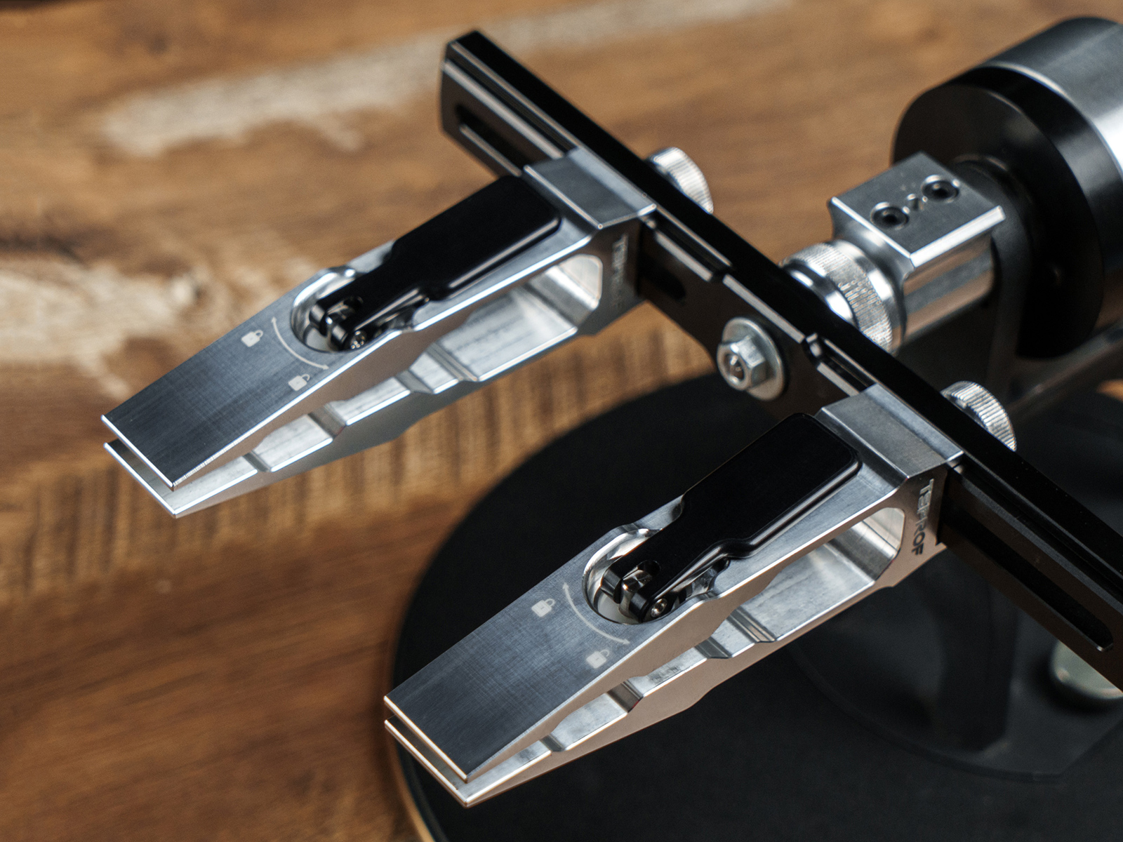 Для уменьшение износа сопрягаемых деталей выборка под зажимную лапку в зажиме и сама лапка имеют одинаковые радиусы скруглений. Благодаря этому даже во время регулировки толщины, даже при большой нагрузке зажимная лапка «скользит» по поверхности зажима, дольше сохраняя первозданный внешний вид. Зажим, как и зажимная лапка выполнены из авиационного сплава алюминия повышенной прочности.
