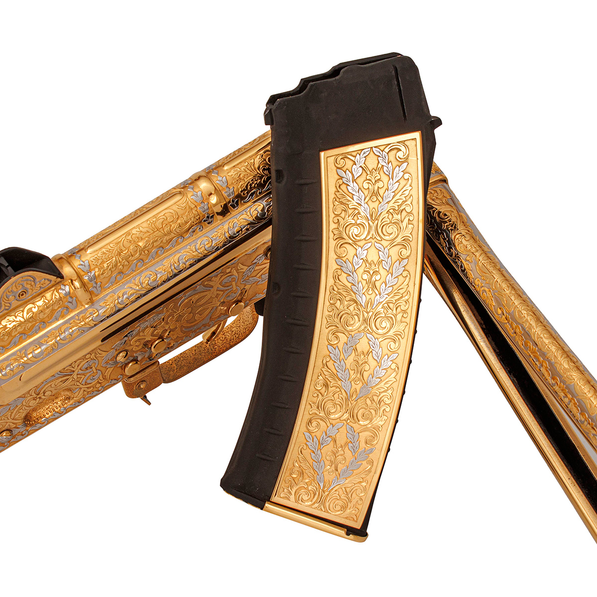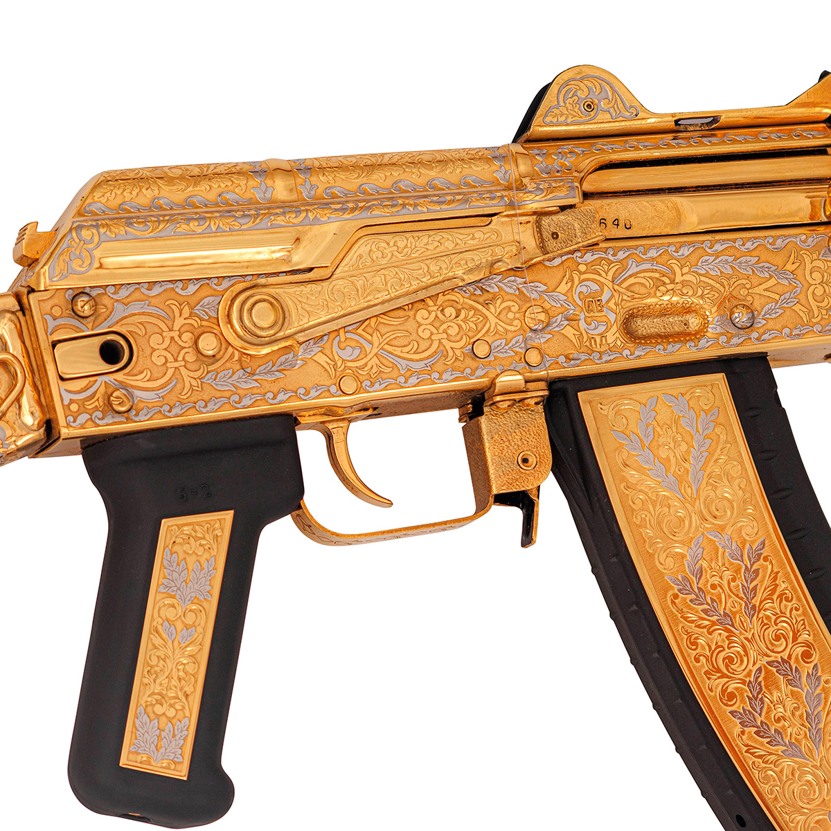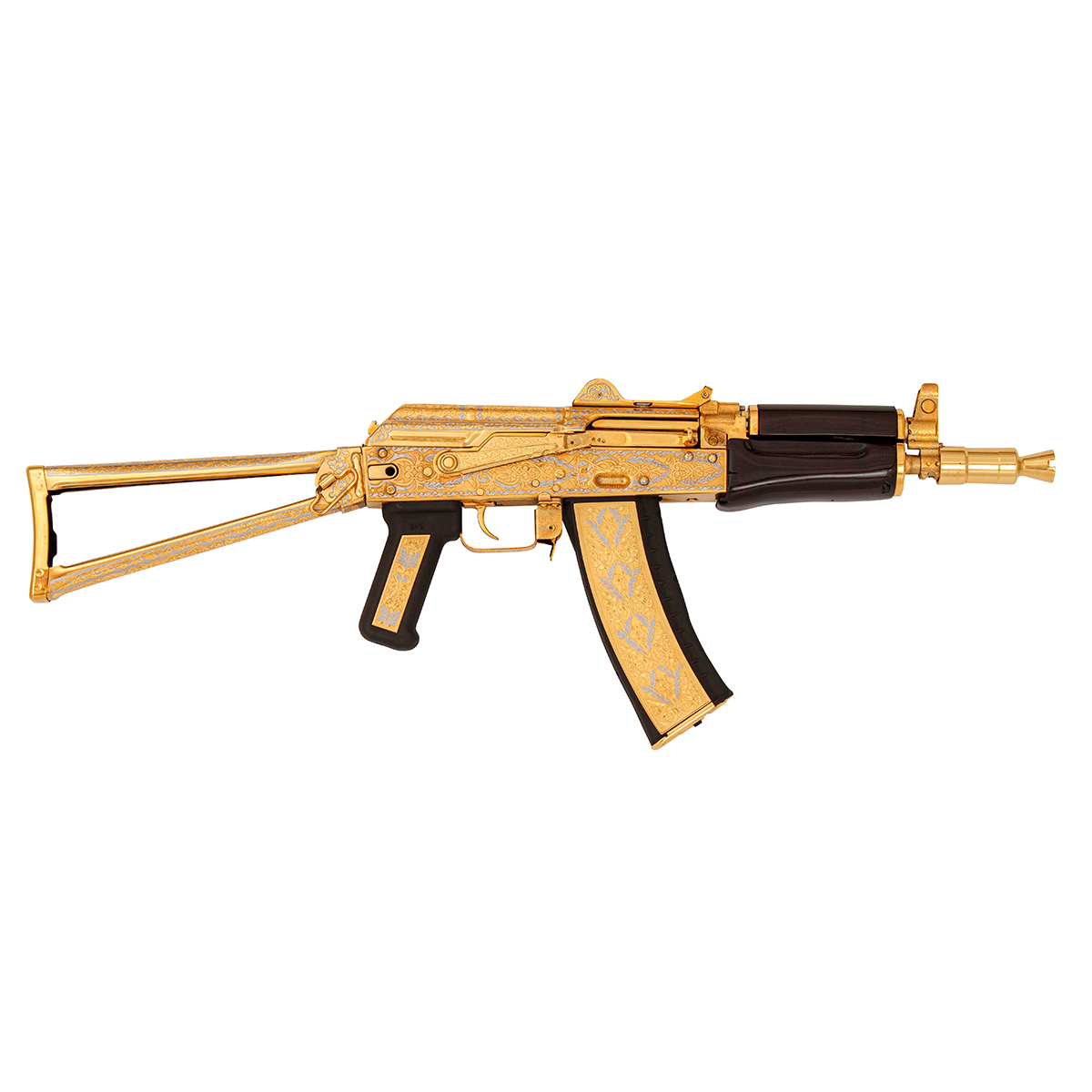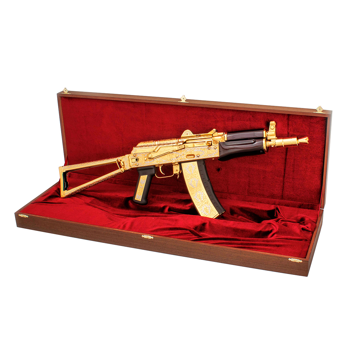 Купить Золотой автомат АКСУ-74 охолощенный - это эксклюзивный подарок который можно приобрести в нашем магазине "ЗЛАТМАКС". Только лучшие и дорогие Vip подарки от златоустовских оружейных заводов и фабрик. Быстрая доставка по всей России, возможна доставка самолетом!